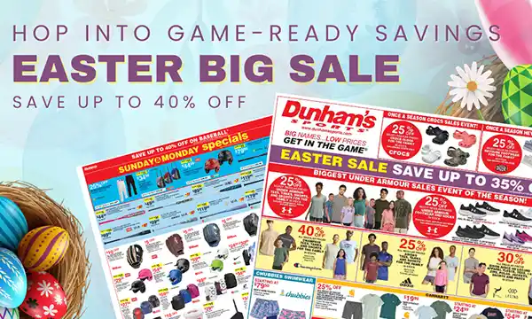 Select Dunham’s Sports locations will open one hour earlier on Saturdays and Sundays this Spring. Participating stores will open at 8AM Saturday and 9AM Sunday. -