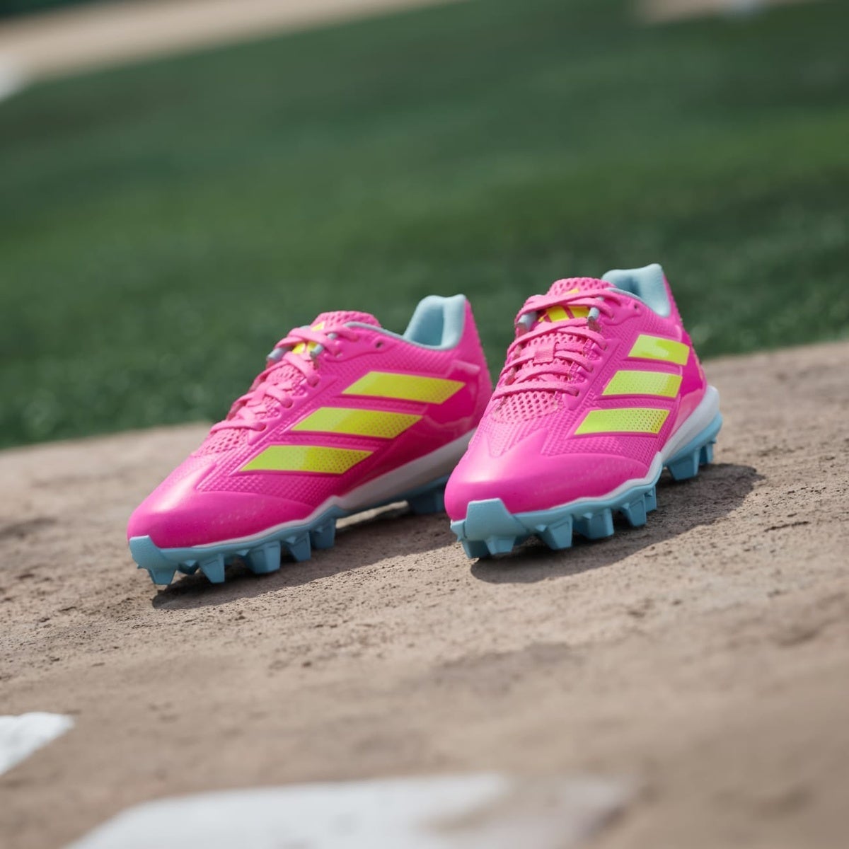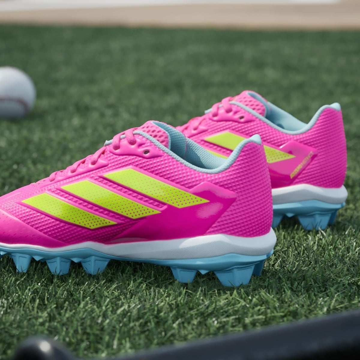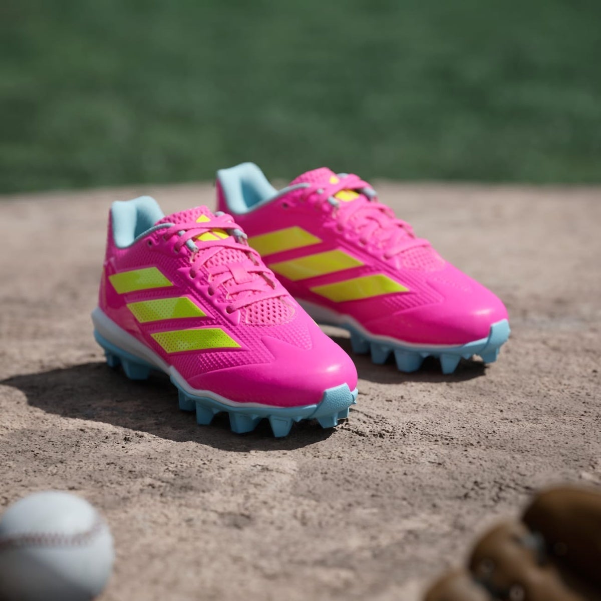 Built for young ballplayers, these adidas Adizero Instinct Molded Rubber 2.0 cleats deliver a fast, lightweight feel with a bold, standout look. A synthetic and textile upper provides durable supportwhile staying flexible through sprints, stops, and quick cuts. Underfoot, molded rubber studs help players dig in for confident traction from the first pitch to the last out.