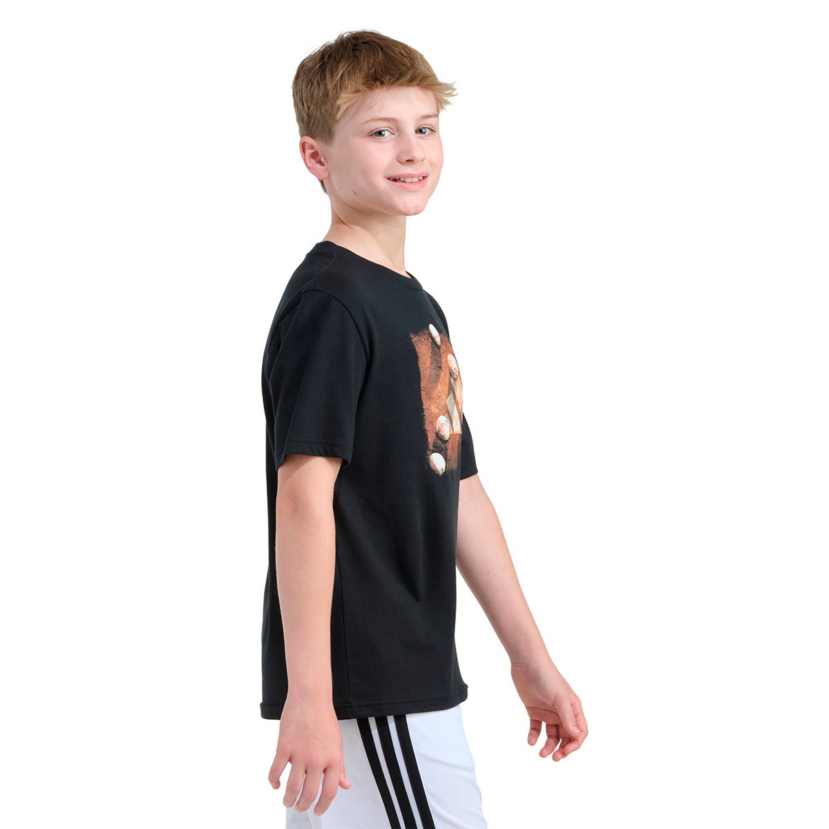 Let your child celebrate the spirit of baseball with this adidas tee, featuring a striking 3 Bar Logo baseball plate screen print on the front. The 3 Bar logo loop label on the hem adds a touch of adidas authenticity to this sporty staple. Great for young athletes and fans alike, the tee is made from soft jersey, with a regular fit and rib-knit crewneck for comfort during playtime, school or sports practice.