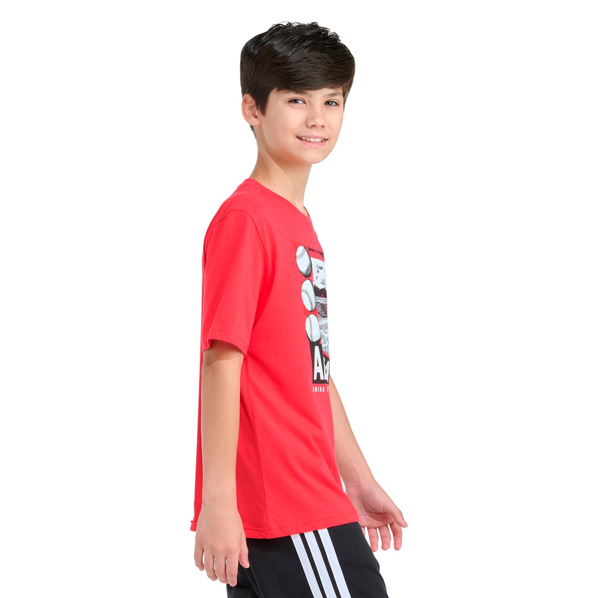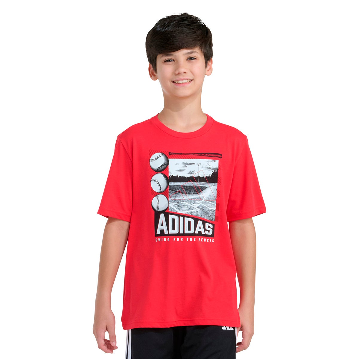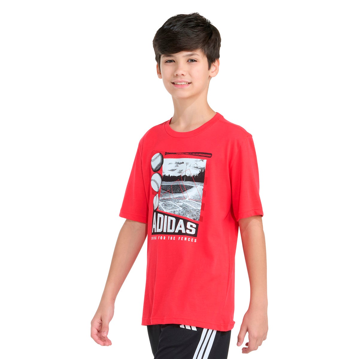 Designed for young baseball enthusiasts, this tee's vibrant screen print captures the excitement of the match. It features a photoreal baseball pitch and the iconic adidas Lineage Logo. The tee is made from soft jersey with a regular fit and rib-knit crewneck for comfort during school days, playtime and sports practice. Inspire your child's dreams of hitting home runs with this colorful adidas tee.