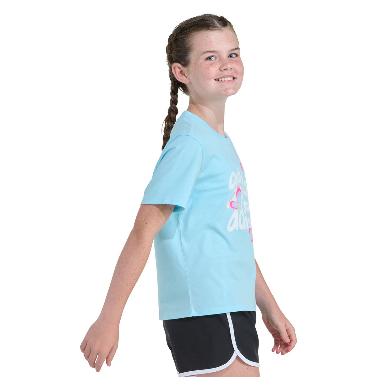 Let your little one's imagination soar with this playful adidas t-shirt. Featuring a whimsical warped triple stack logo adorned with butterflies, it's terrific for school days or playtime adventures.Crafted from soft cotton jersey, this versatile piece offers a regular fit and rib-knit crewneck for comfort, whilst the straight hem adds a touch of style. This t-shirt brings a splash of fun to th