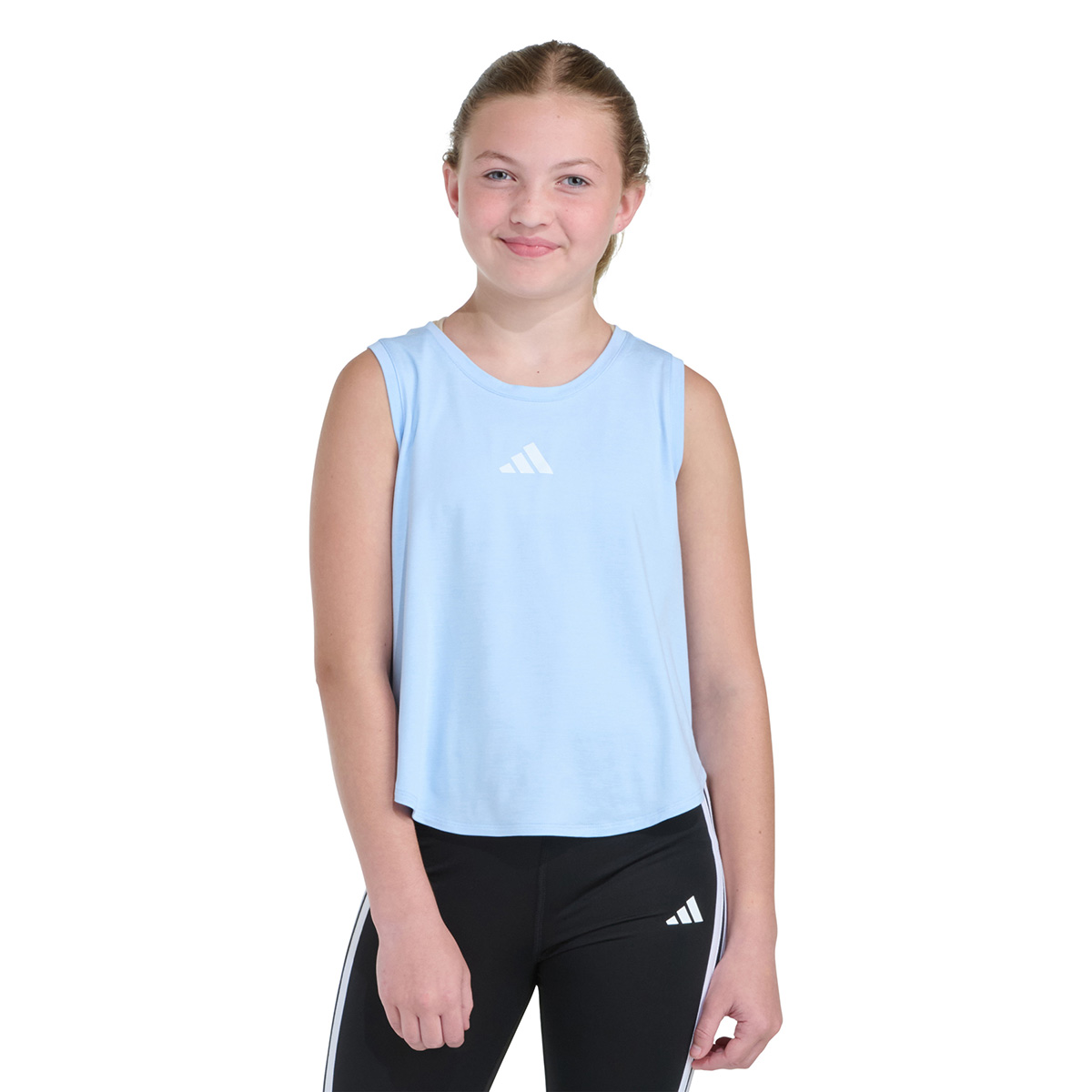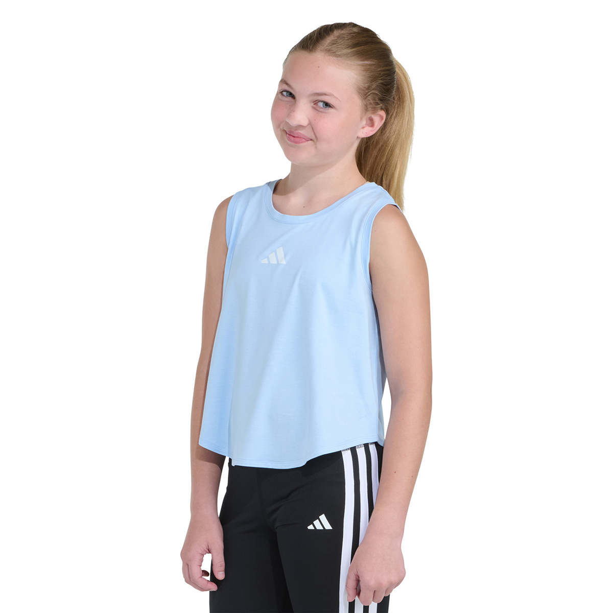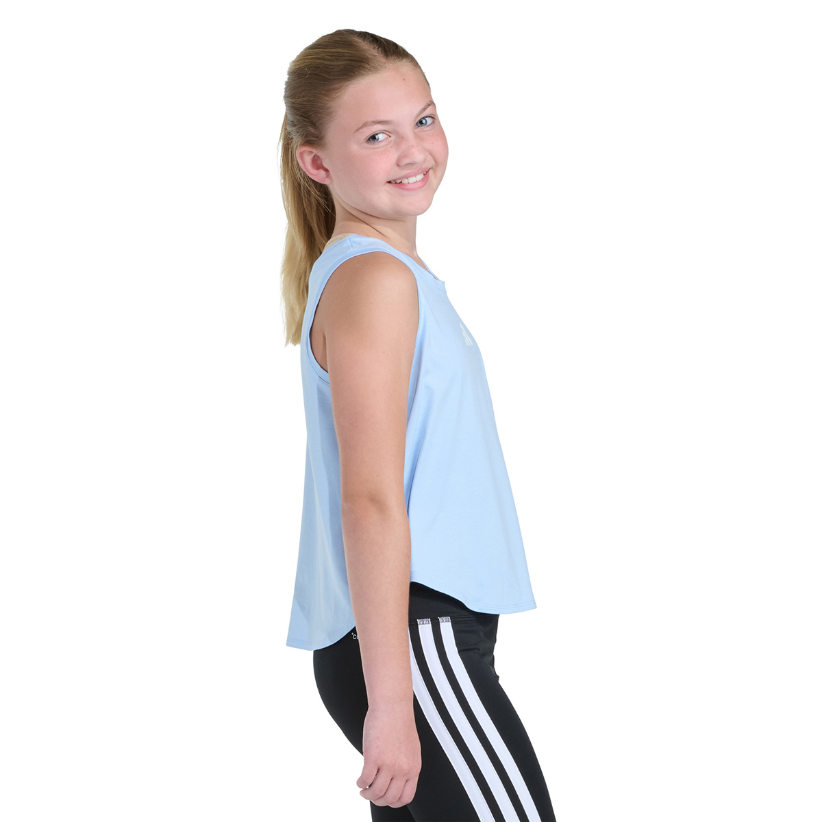 Let your little one twirl through the day with this adidas tank top. Designed for comfort and style, its loose fit and curved flounce hem offer a playful silhouette great for recess or playdates. The soft m lange jersey fabric provides a cozy feel, whilst the 3-Bar Logo adds a sporty touch. Whether worn for school or weekend fun, this tank top is a versatile addition to your child's wardrobe.