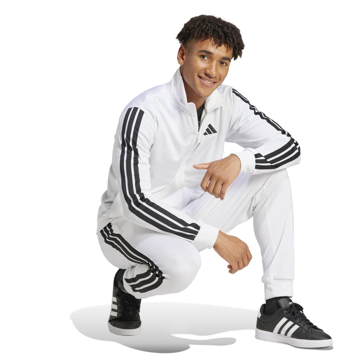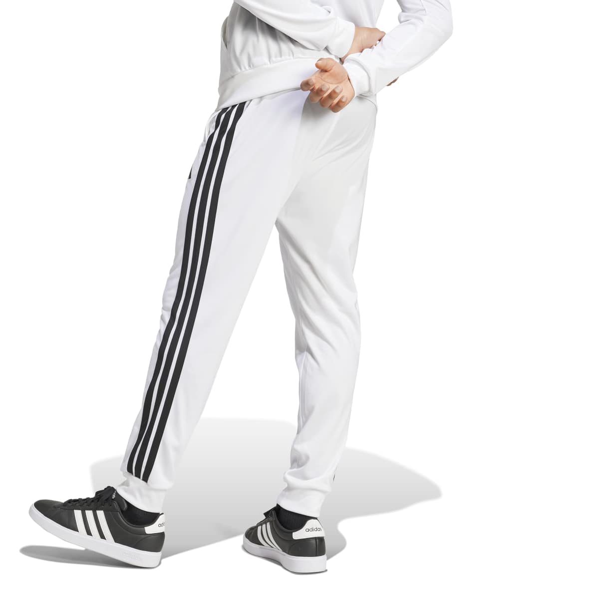 These adidas track pants are your go-to whether you're lounging at home or hitting the town. Their soft yet durable fabric means you can wear them on repeat. Ribbed cuffs give them a slightly taperedlook, and the signature 3-Stripes down the sides make these feel instantly adidas. Comfortable, versatile and ready for anything just like you. This product is made with 100% recycled materials. Byreusing materials that have already been created, we help to reduce waste and our reliance on finite resources and reduce the footprint of the products we make.
