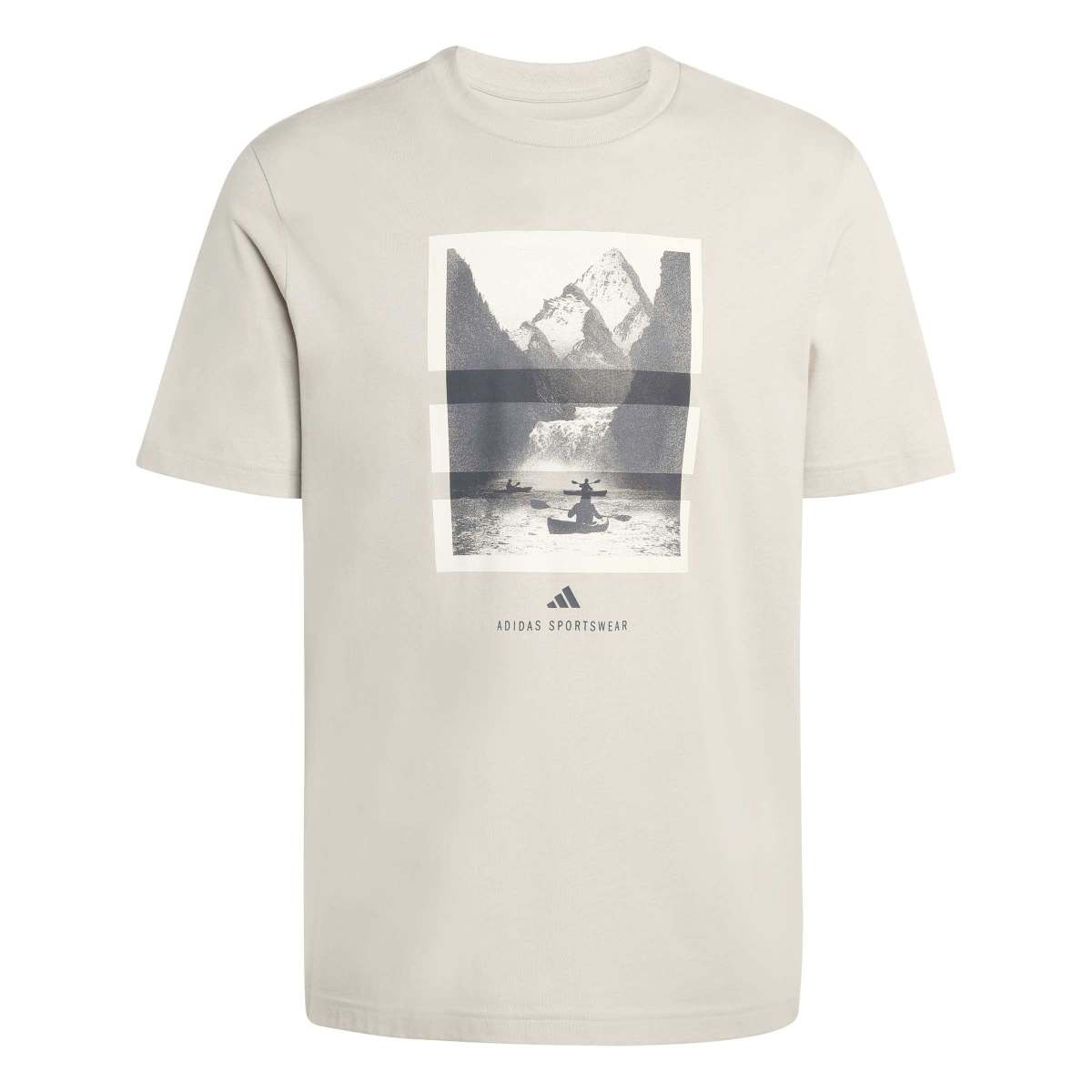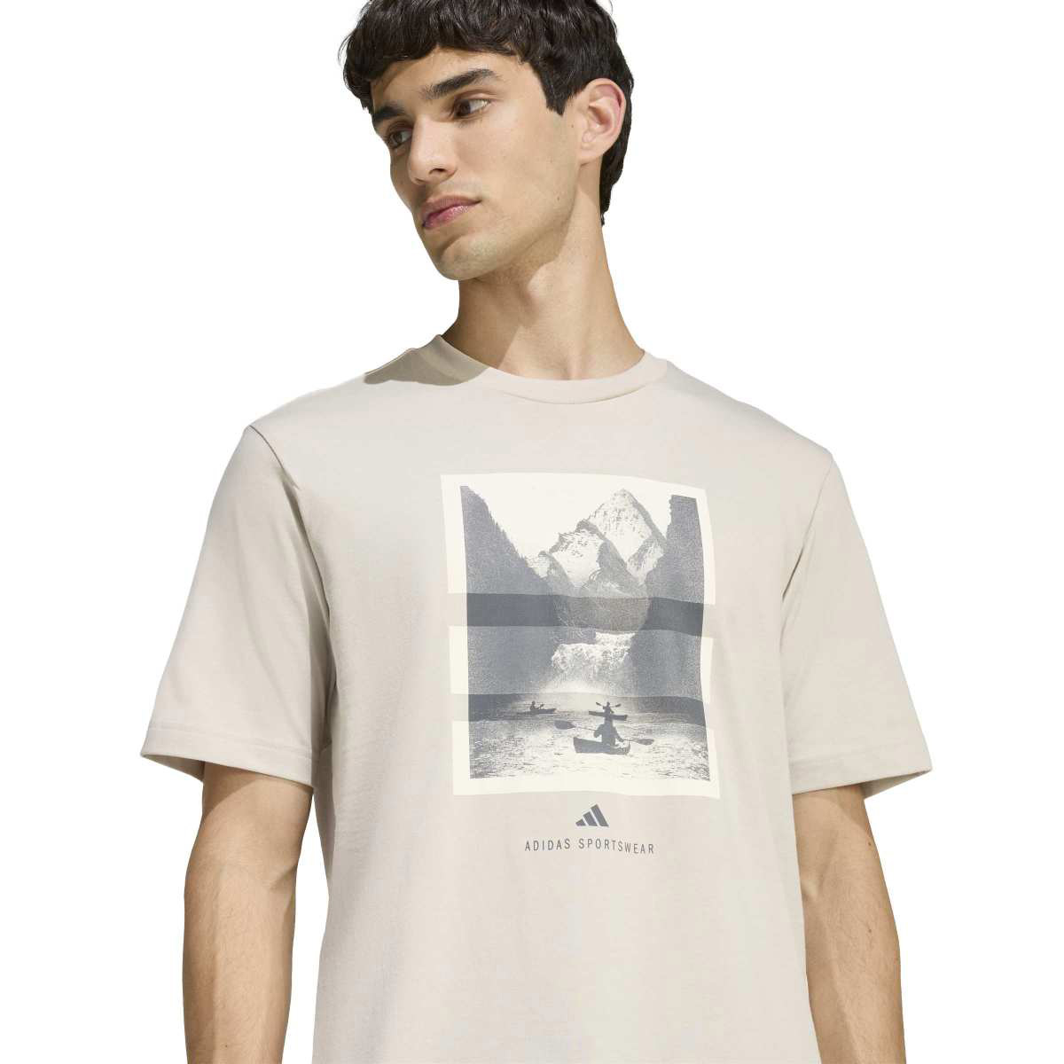 Bring an outdoorsy vibe to your everyday rotation with this adidas graphic tee, featuring a kayaking inspired front print. Soft single jersey keeps it comfortable for all day wear, whether you are exploring the city or heading out for a weekend trip. An easy, regular fit makes it simple to layer and style.
