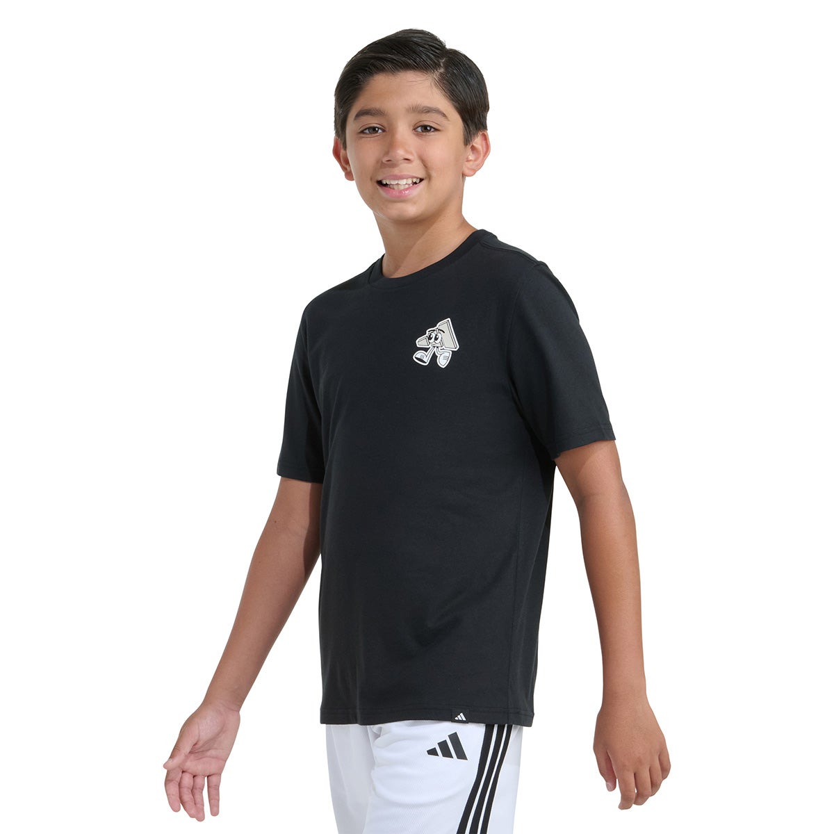 Showcase your child's love of sport and fun with this playful tee, which features the iconic 3-Bar Logo reimagined as a lovable cartoon character playing sports. This adidas tee is made from soft jer