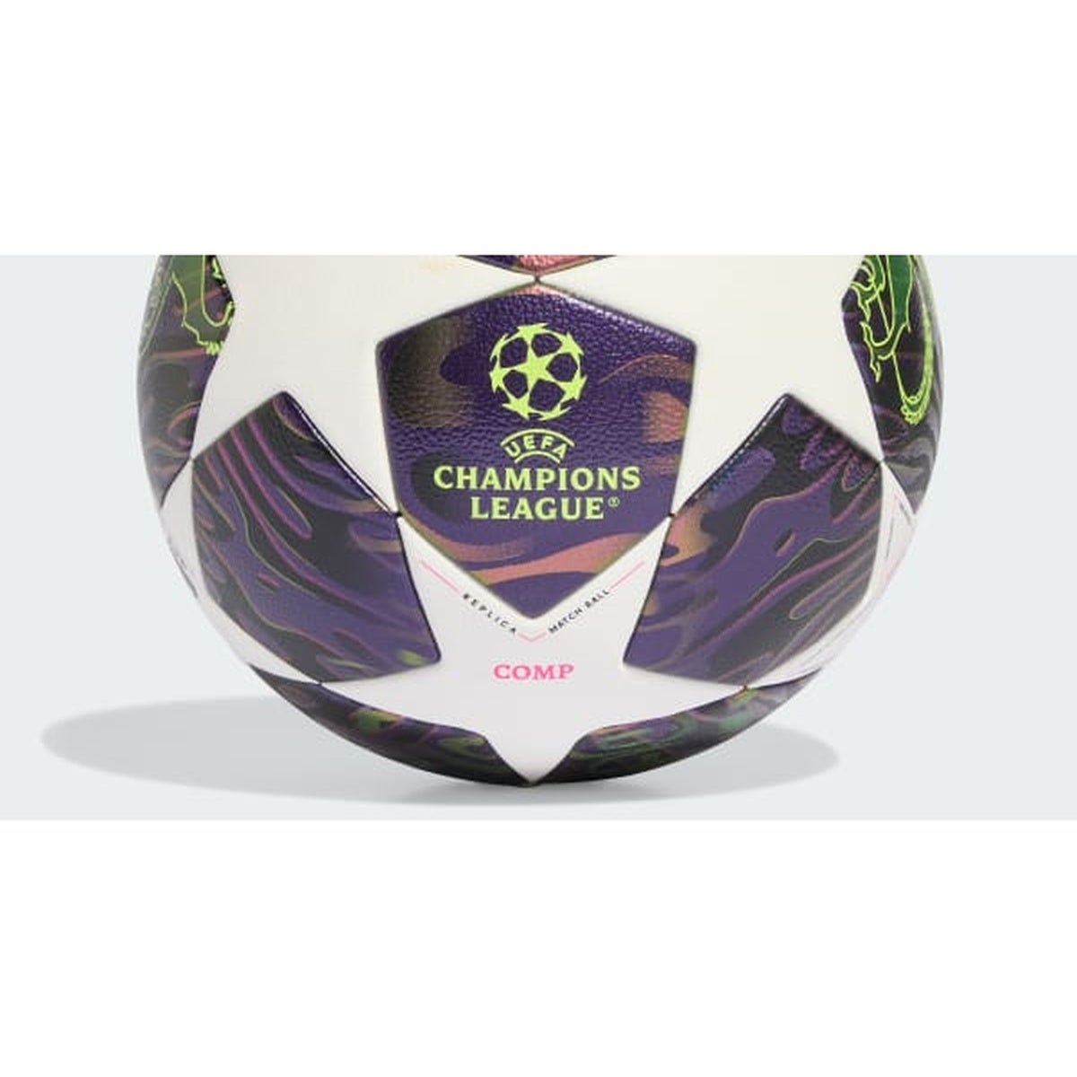 Celebrate the UEFA Champions League Final with a bold, match inspired ball designed to stand out on the pitch. A star panel design and vibrant graphic details deliver iconic UCL style from every angle. Built for serious play, it offers a crisp feel and consistent touch for training sessions and competitive kickabouts. The dark purple and white palette is finished with energetic pops of colour fora modern tournament look.