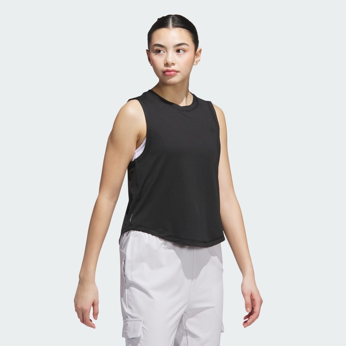 Bring a confident, clean look to every session in this lightweight training tank. Its sweat-managing feel helps you stay comfortable as intensity climbs, while the easy, loose silhouette keeps movement unrestricted. Thoughtful seam placement and a scooped hem add a flattering finish from warmup to cooldown.