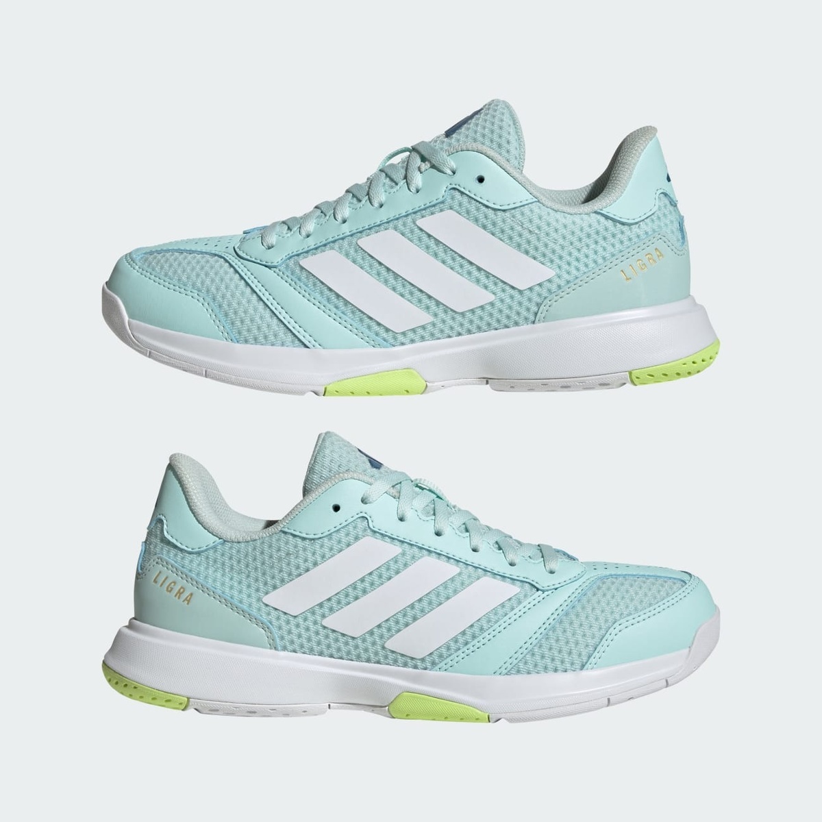 - foot in lightweight comfort while standing up to the rigors of high-intensity play. The reinforced Adituff toe adds durability exactly where you need it most, ensuring the shoe can keep pace with yourmost demanding matches. Built with at least 20% recycled materials, the Ligra 8 lets you compete at your best while making a smaller footprint on the planet.