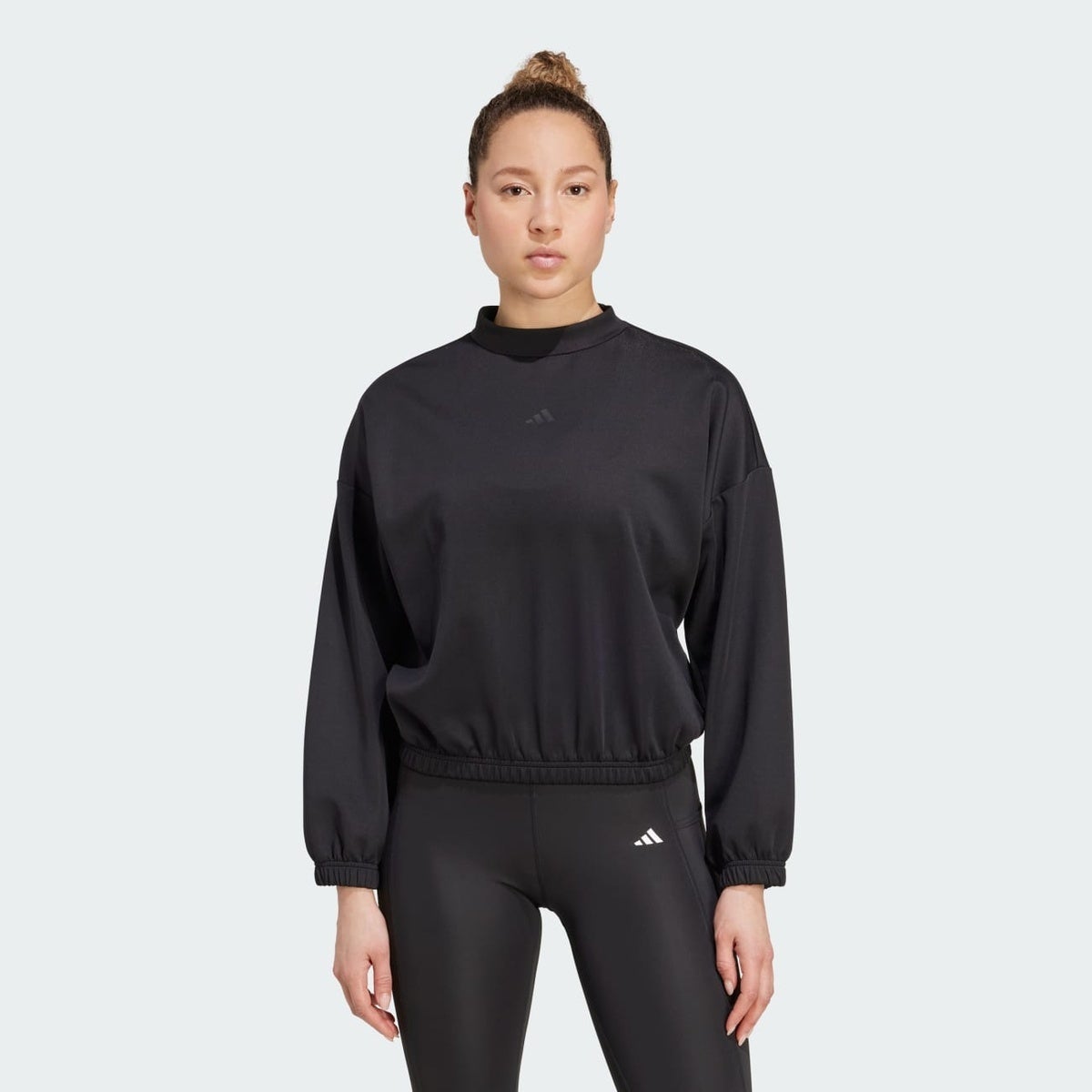 When studio temps drop, this adidas yoga cover-up keeps you comfortable through warmups, cooldowns, and everything between. Soft, stretchy fabric with CLIMACOOL helps manage sweat so you stay cool, dry, and focused. A slightly cropped cut with an elasticated hem adds a flattering shape that moves with you.