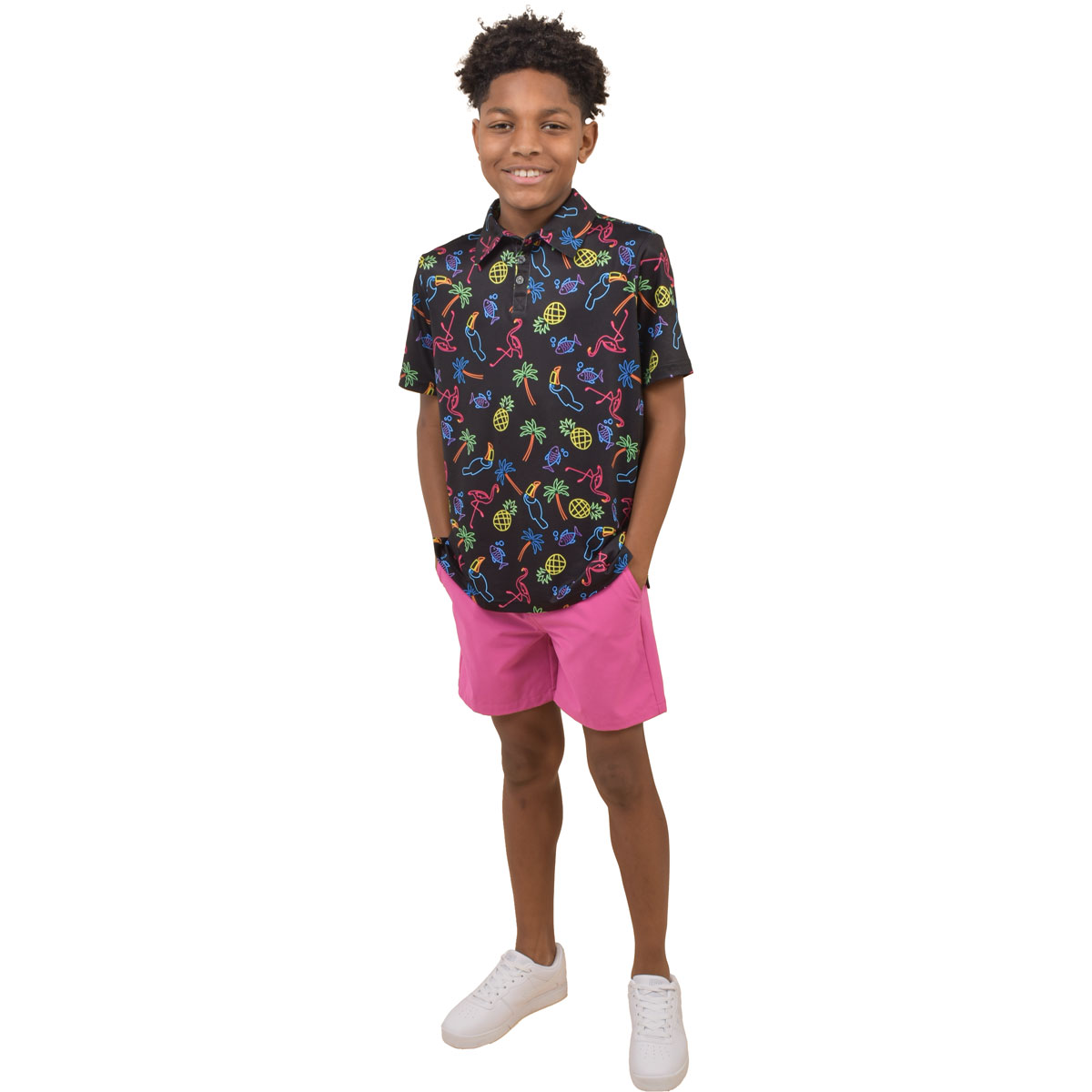 The Boys' Aeroline Printed Polo adds fun, standout style to everyday comfort. Designed with breathable fabric and eye-catching prints, these polos pair easily with Aeroline shorts for a