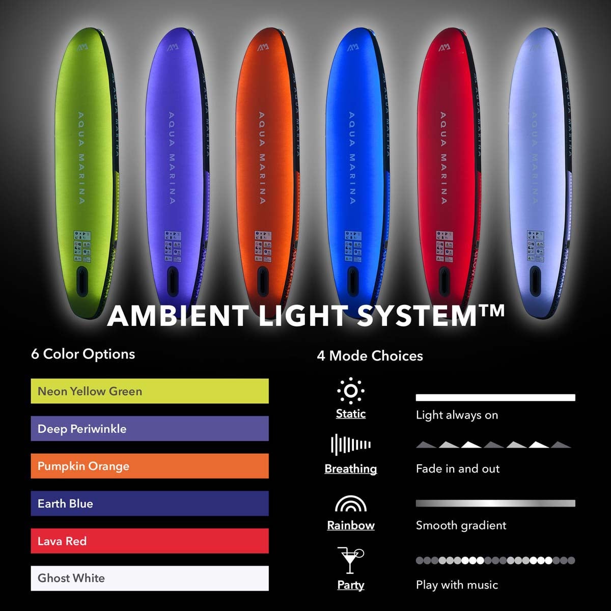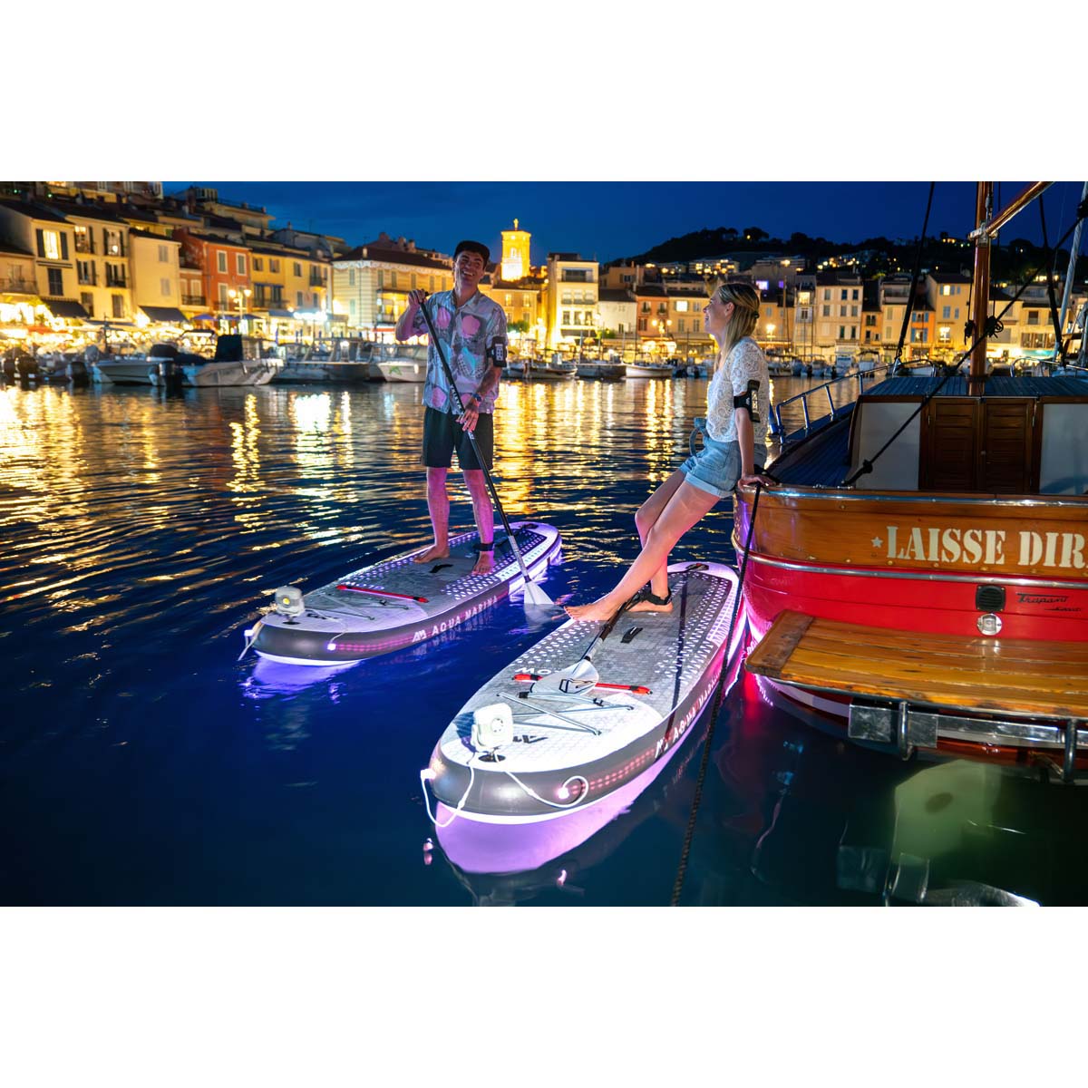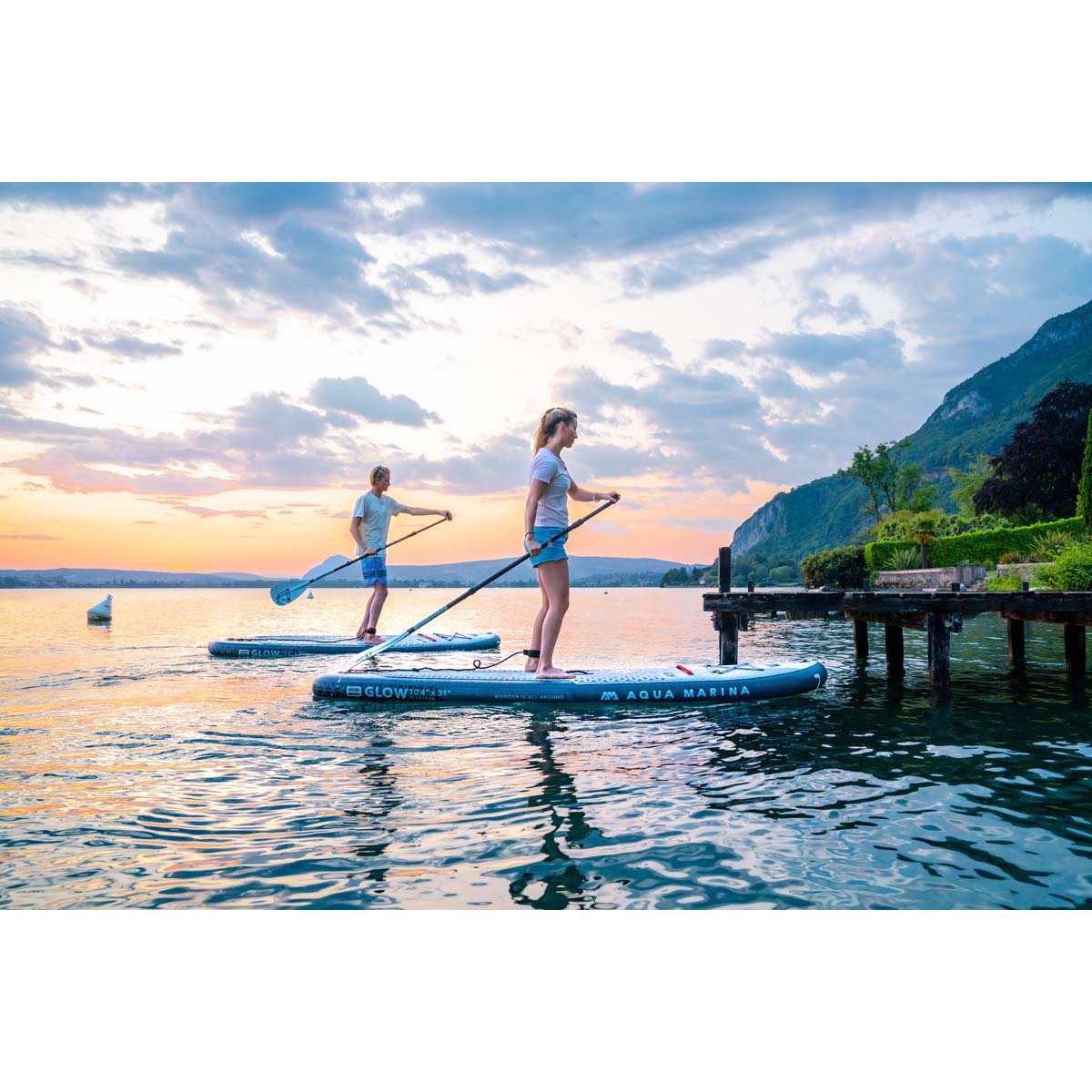 Innovation meets excitement with the GLOW iSUP from Aqua Marina. The GLOW is the world's first inflatable stand up paddle board that allows users to paddle during the day and continue their