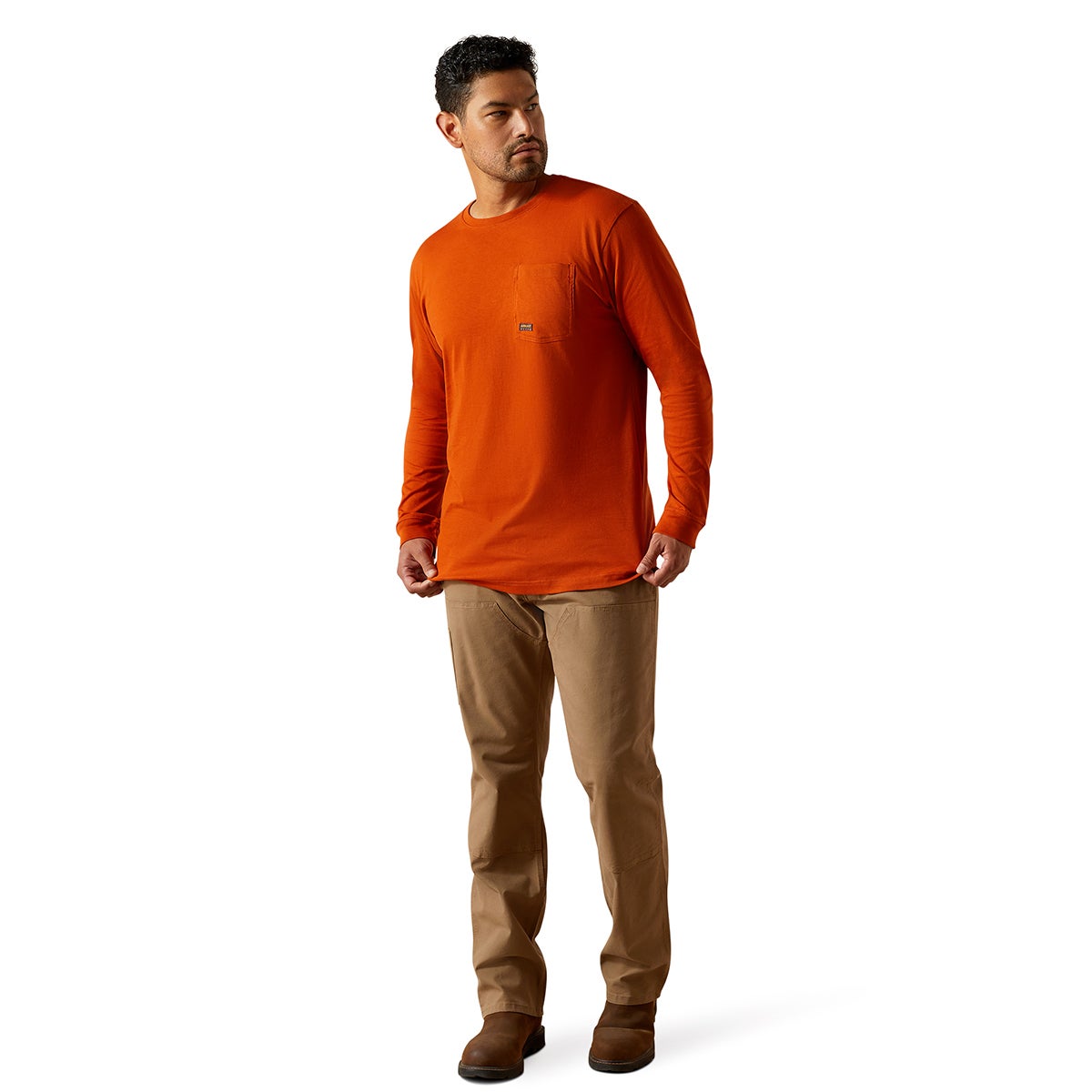 Work hard, live free, and wear a T-shirt that keeps up. Core to every Rebar® CottonStrong T-shirt is our pre-washed, ultra-comfortable yet equally durable jersey fabric. We gave this one an extra-longback hem for more coverage while you bend and reach.