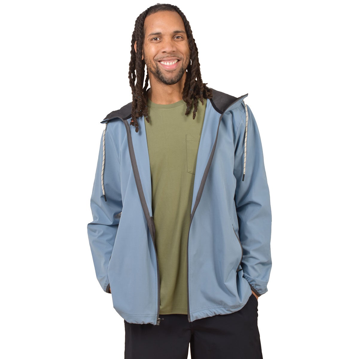 The Avalanche Men's Full Zip Hooded Rain Jacket delivers lightweight protection with flexible comfort for wet-weather wear. Designed with stretch performance and water resistance, this jacket