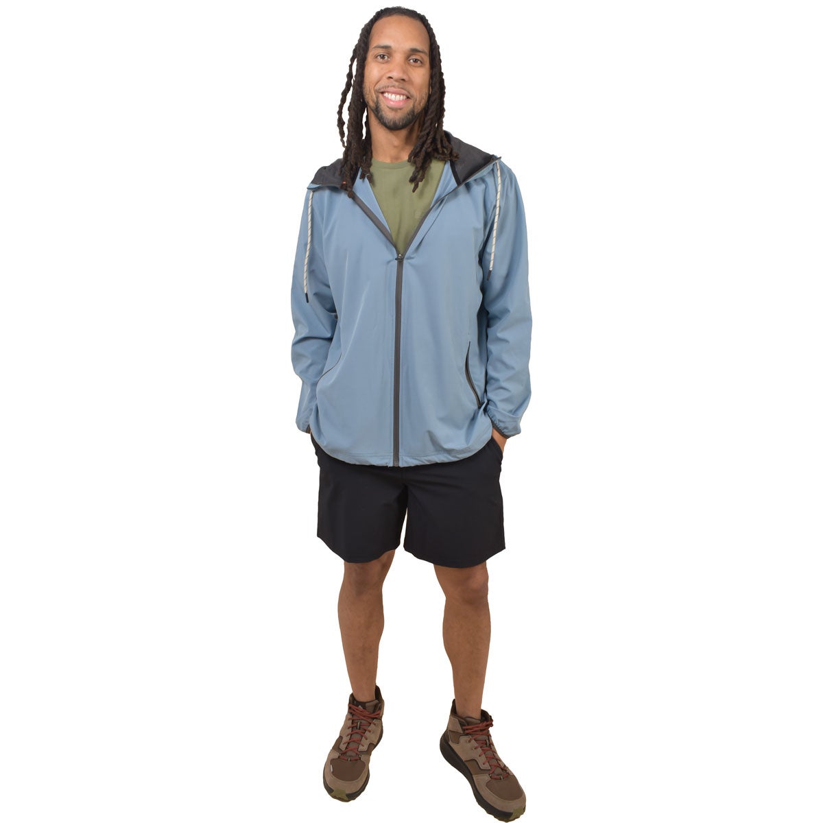 - Attached hood adds extra coverage in wet conditions