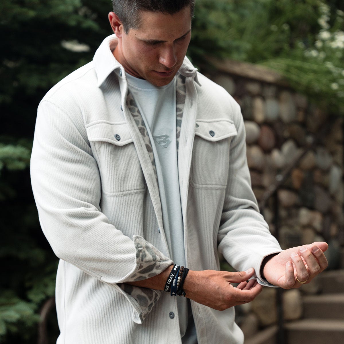 Heavyweight Outerwear from the Fall 25' Collection, crafted with super soft ribbed fleece for maximum comfort and warmth. The interior is brushed and detailed with contrast patterns, combining
