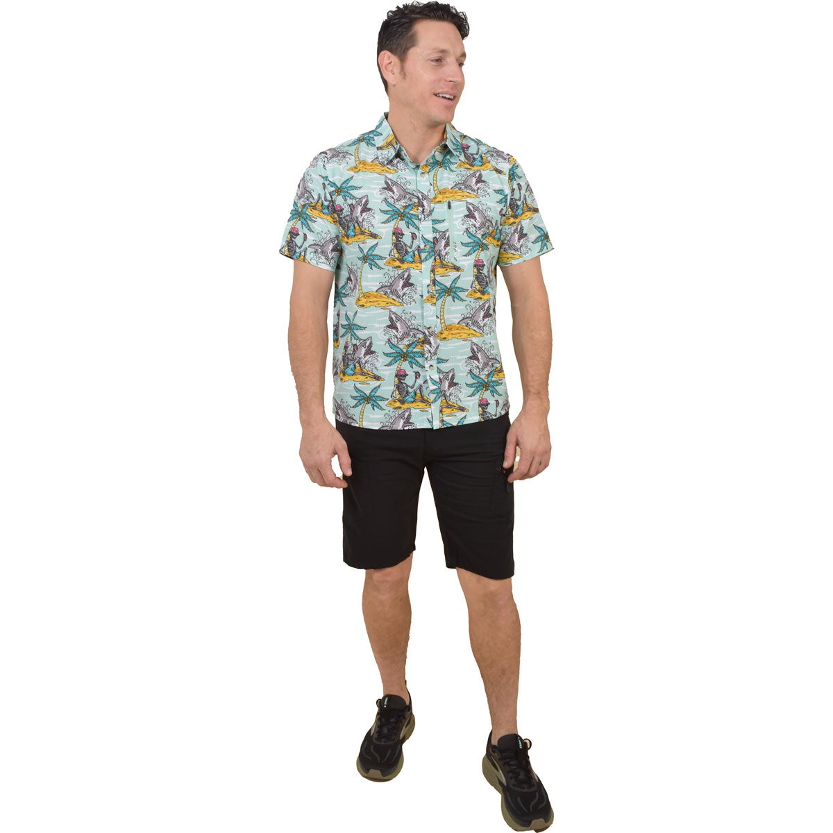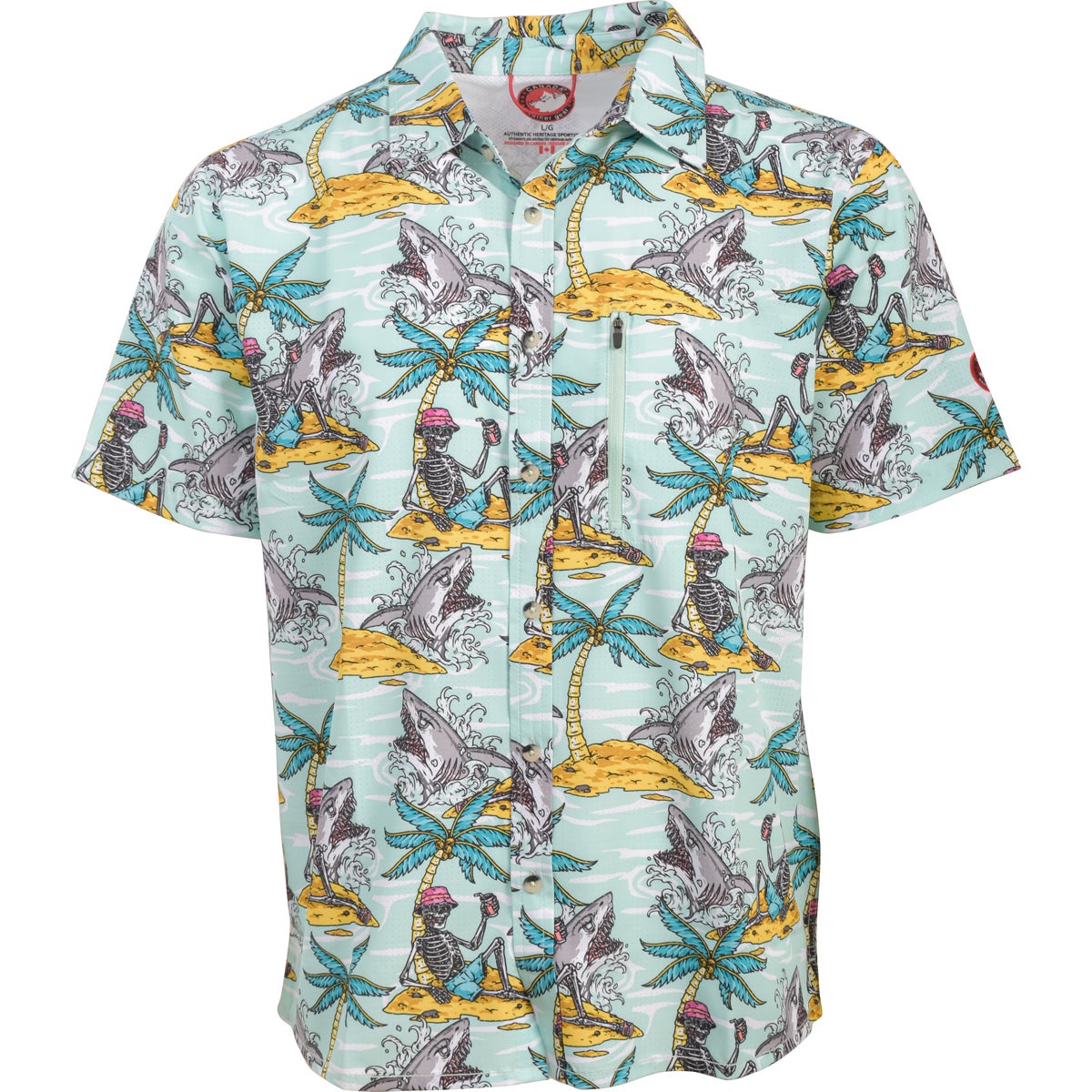 Canada Weather Gear Men's Laid Back Skeleton Perforated Print Poly Woven Shirt