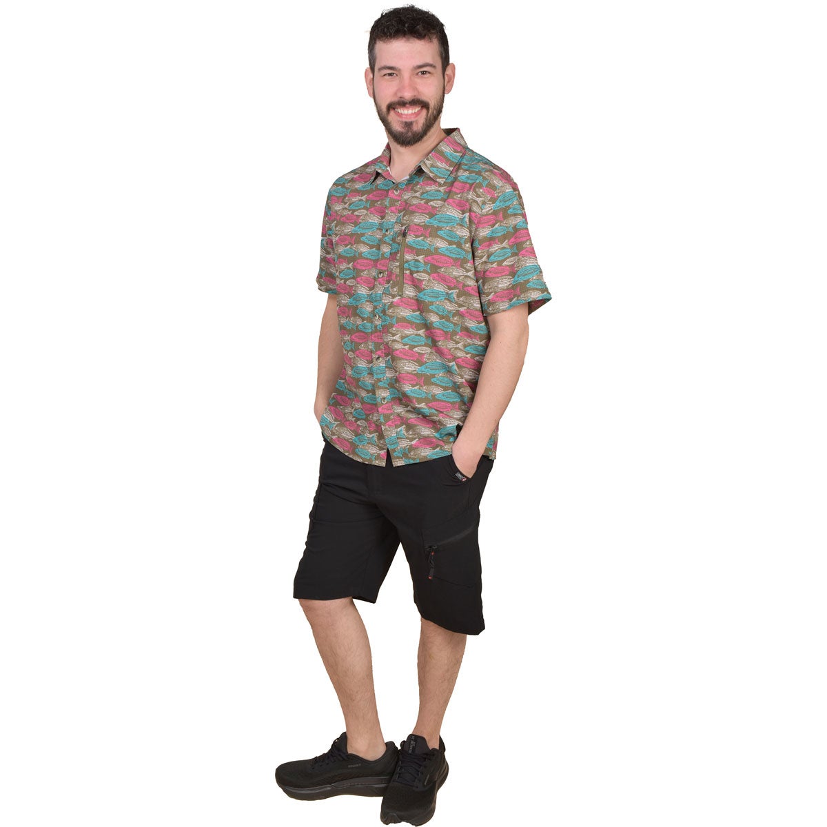 Canada Weather Gear Men's School FIsh Perforated Print Poly Woven Shirt