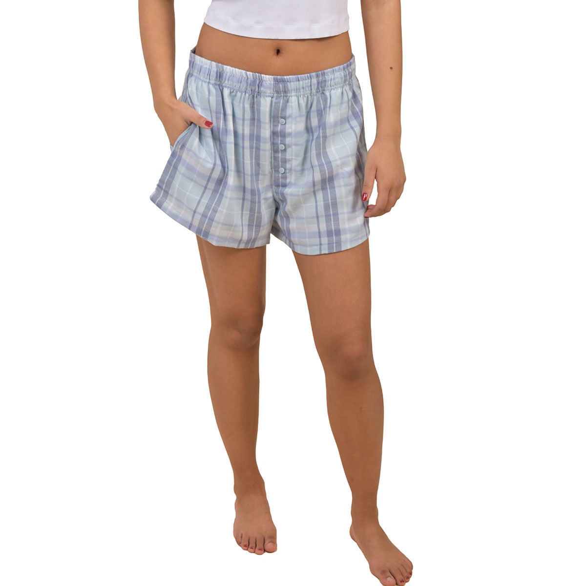 The Canyon Creek Woven Plaid Pull-On Shorts combine relaxed comfort with classic patterning for easy, everyday wear. Crafted from lightweight woven fabric, these shorts offer breathable comfort and a soft feel ideal for warm-weather days. The timeless plaid design adds visual interest while maintaining a casual, versatile look that pairs effortlessly with tees, tanks, and lightweight tops.