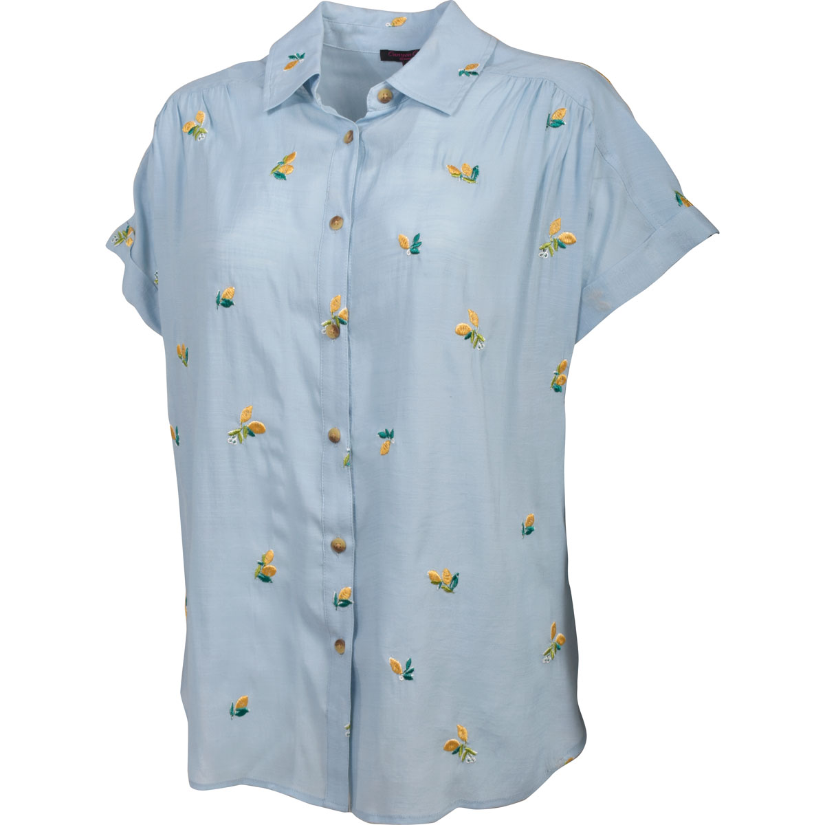 Canyon Creek Women's Celestial Blue Lemon Embroidered Button-Front Short Sleeve Top