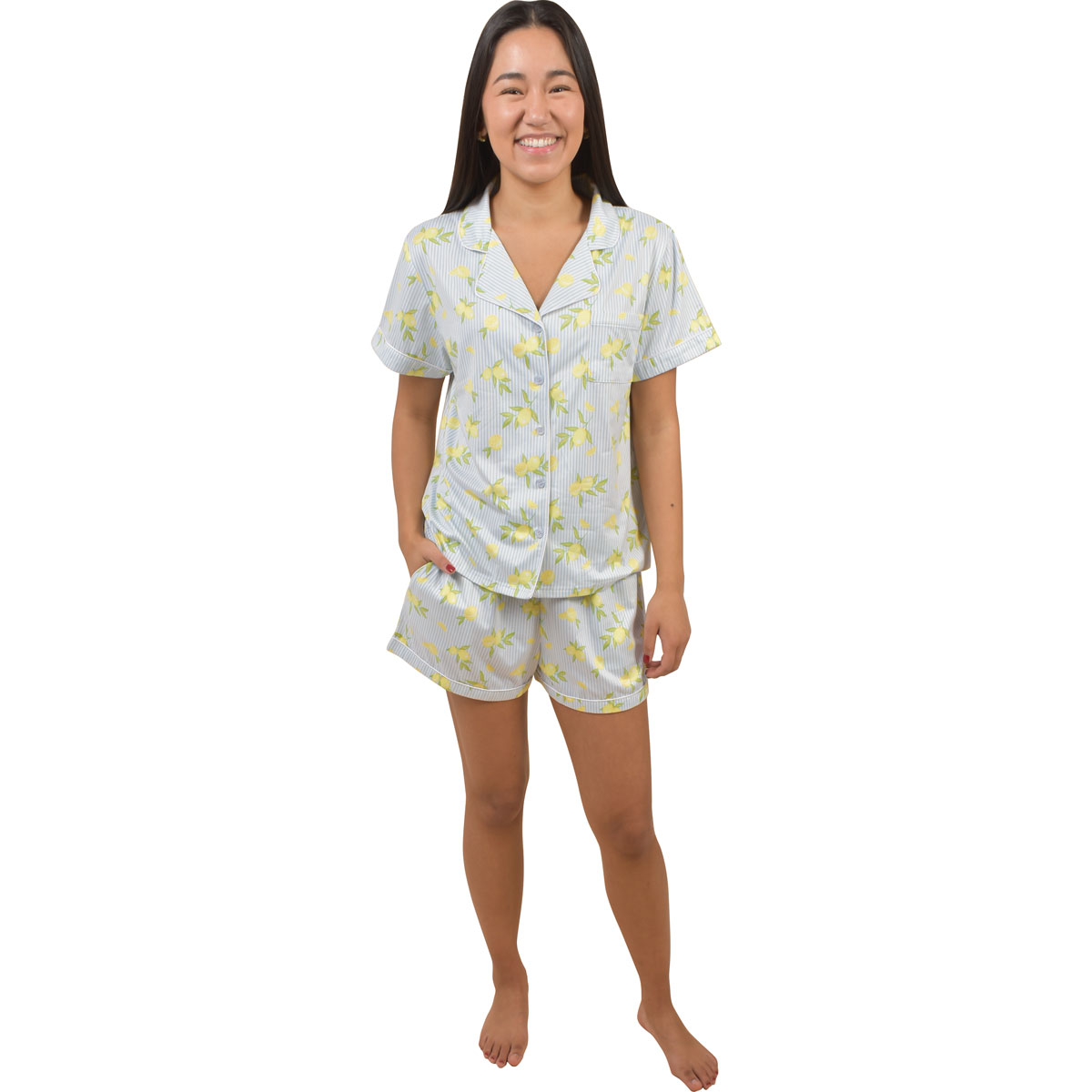 Canyon Creek Women's Lemon Stripe Knit Short Notched Lounge Set
