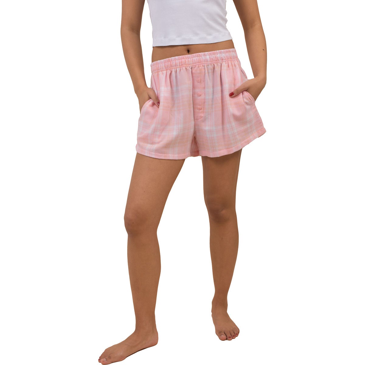 Canyon Creek Women's Pink Woven Plaid Pull-On Shorts