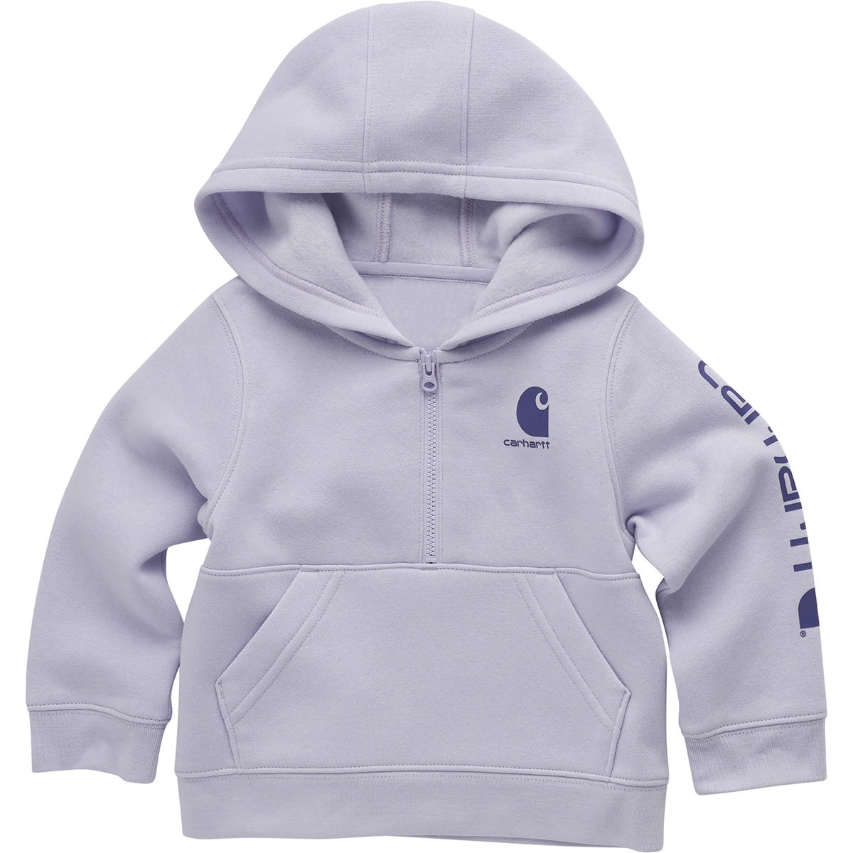 Keep your little girl warm and comfy in this long-sleeve girls' half-zip sweatshirt. It is made fromcozy fleece and has a half-length zipper for easy on and off and a hood for extra coverage. The