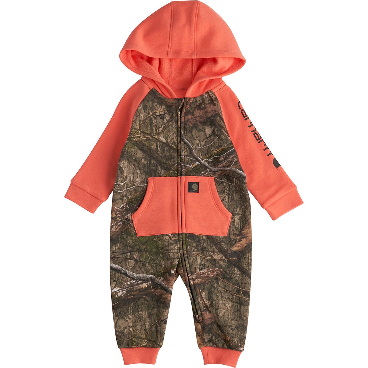 She's ready to explore the world in this baby girls' Carhartt coverall. Made from warm fleece, it has a full-length front zipper to make changing easier on you. Camo print gives her a head start on the hunting life.