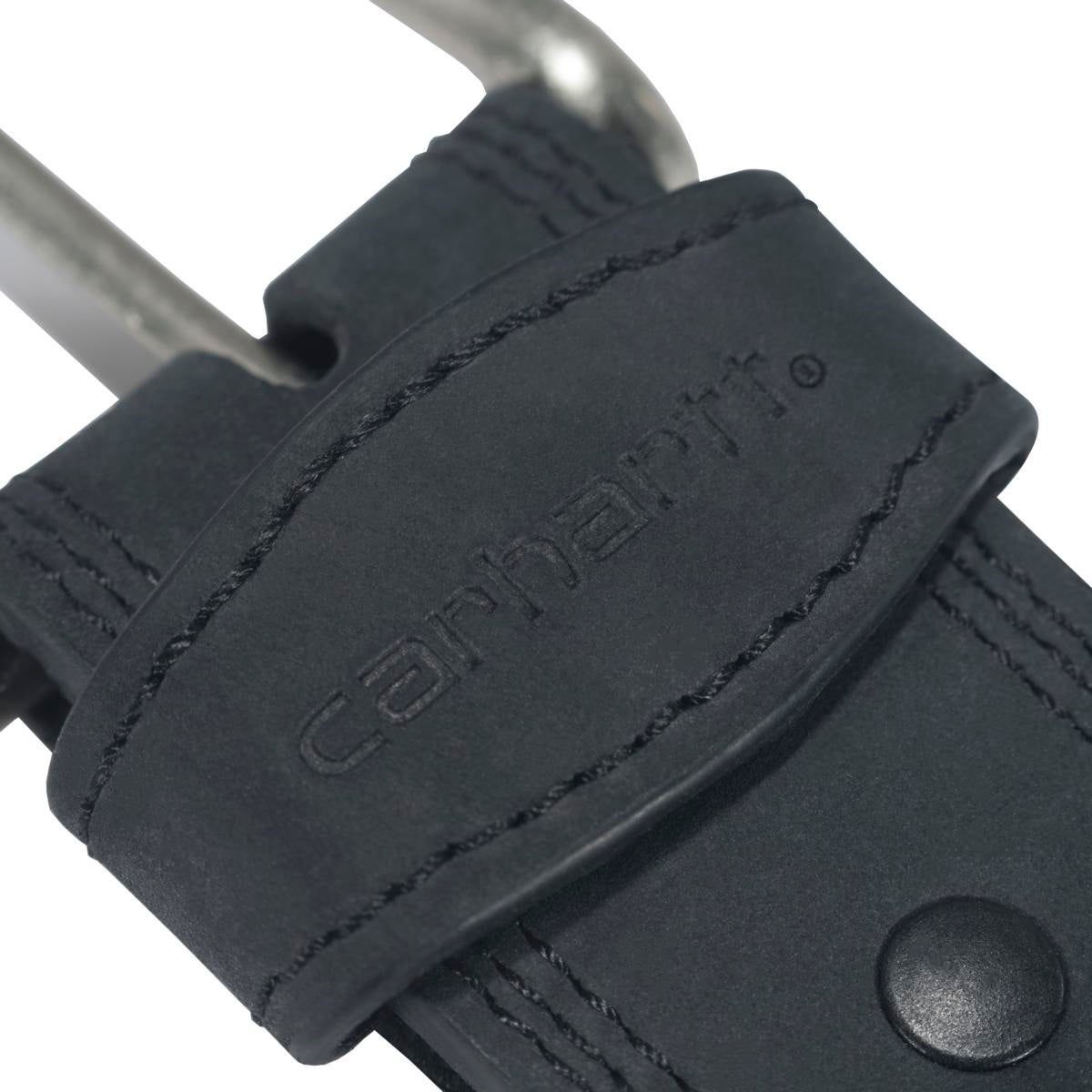 with a debossed Carhartt logo on the belt keeper loop.