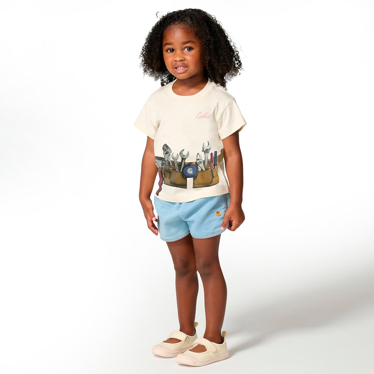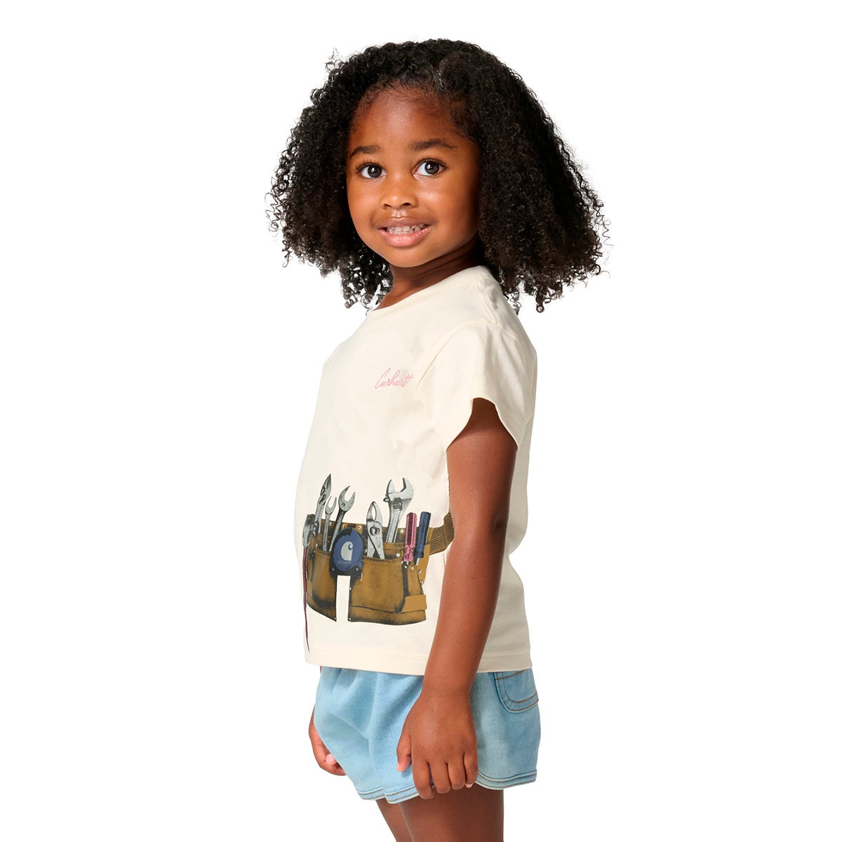 A grown-up look now in fun size. This t-shirt has the silver metallic sheen of the real thing. So soft, she'll want to wear it nonstop. Don't say we didn't warn you. Carhartt tough to last from onekid to the next.