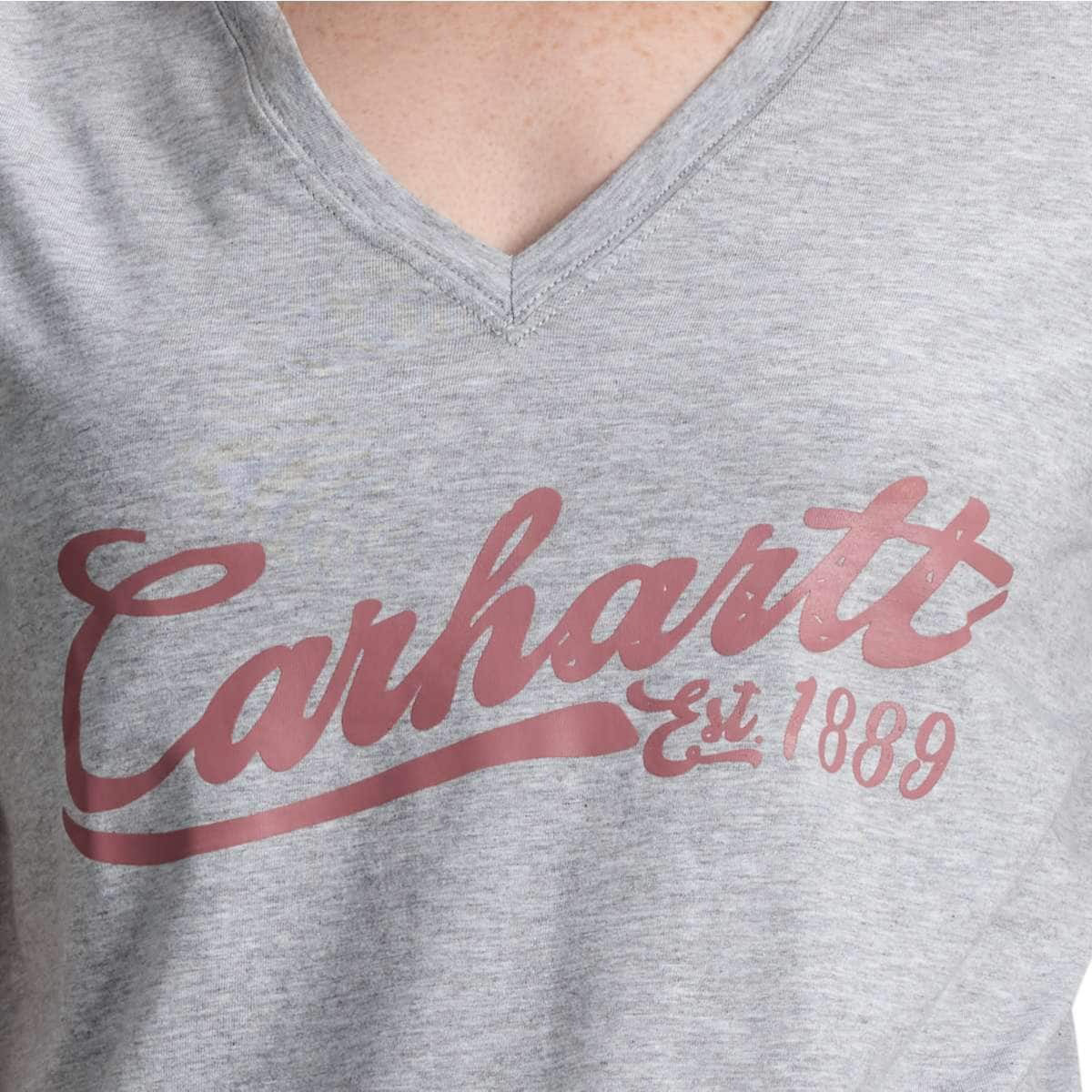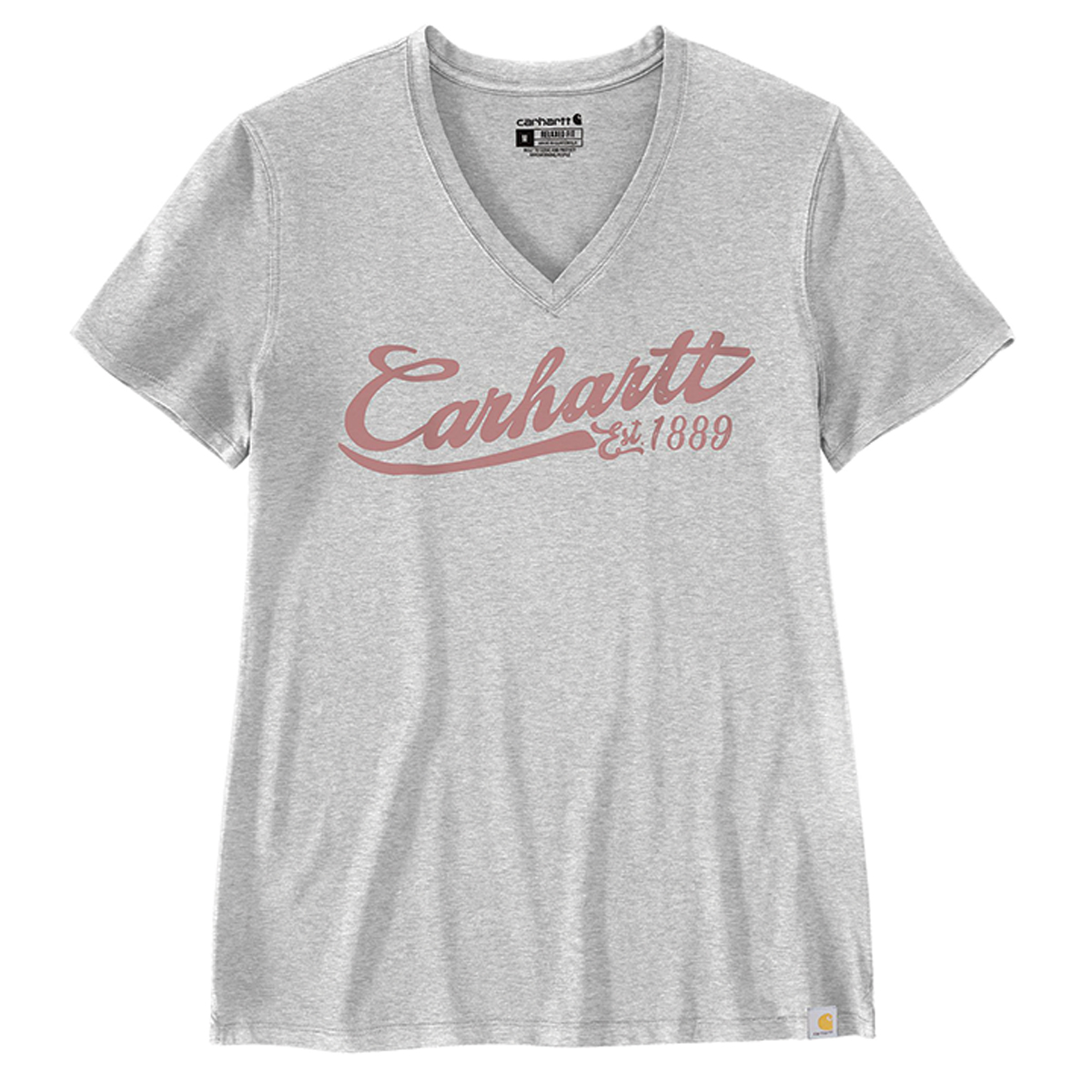 Built for busy days on and off the job, this women s tee combines everyday comfort with a rugged spirit. A soft heathered fabric and a flattering V-neck make it easy to wear solo or layered. Finishedwith a bold front graphic that salutes heritage, it s a go-to top that works as hard as you do.