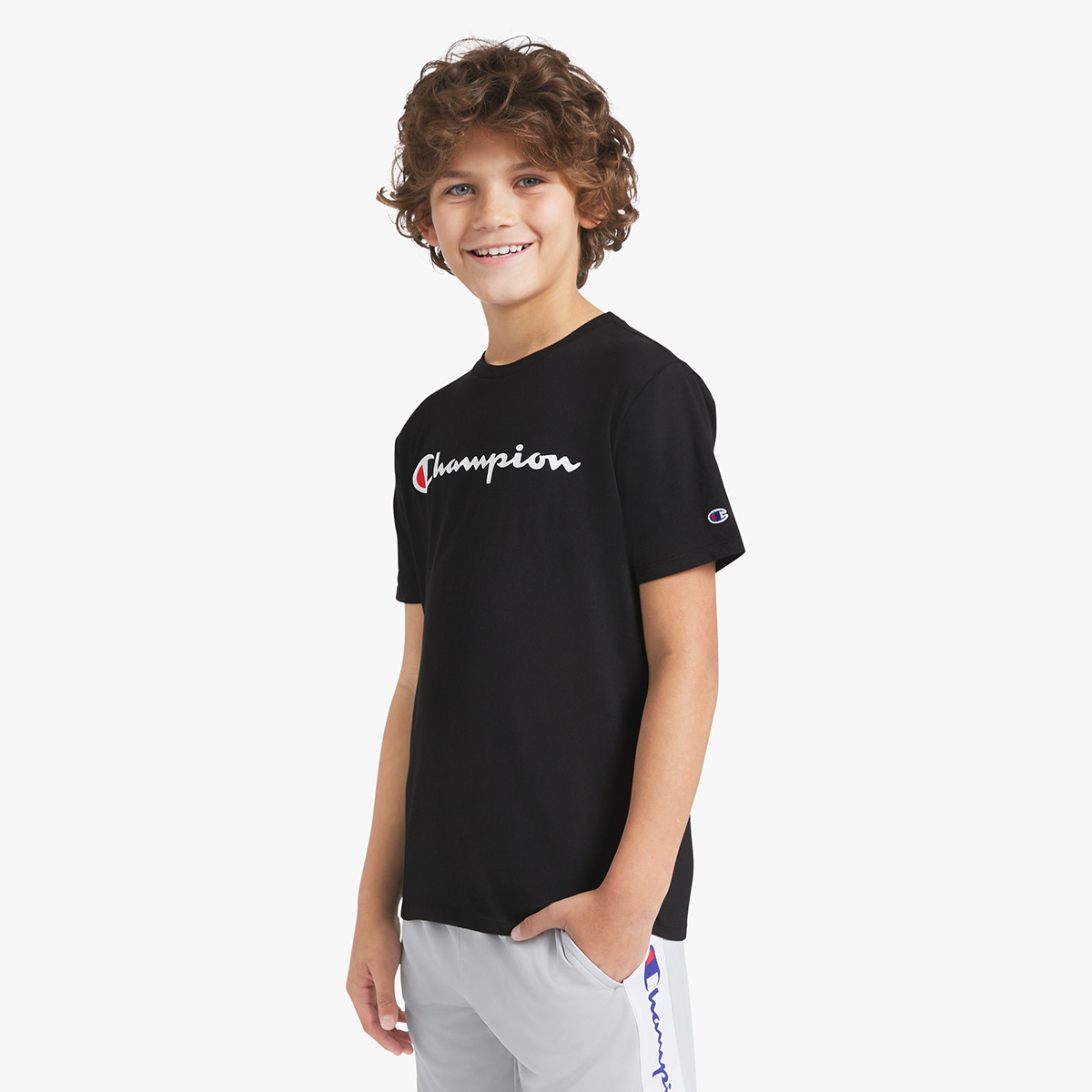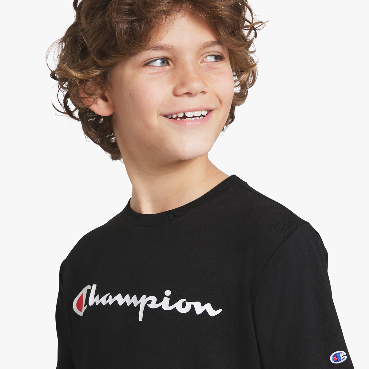 Classic comfort. Iconic style. The Champion Boys? Signature Logo Tee delivers a soft feel and timeless athletic look built for everyday wear.