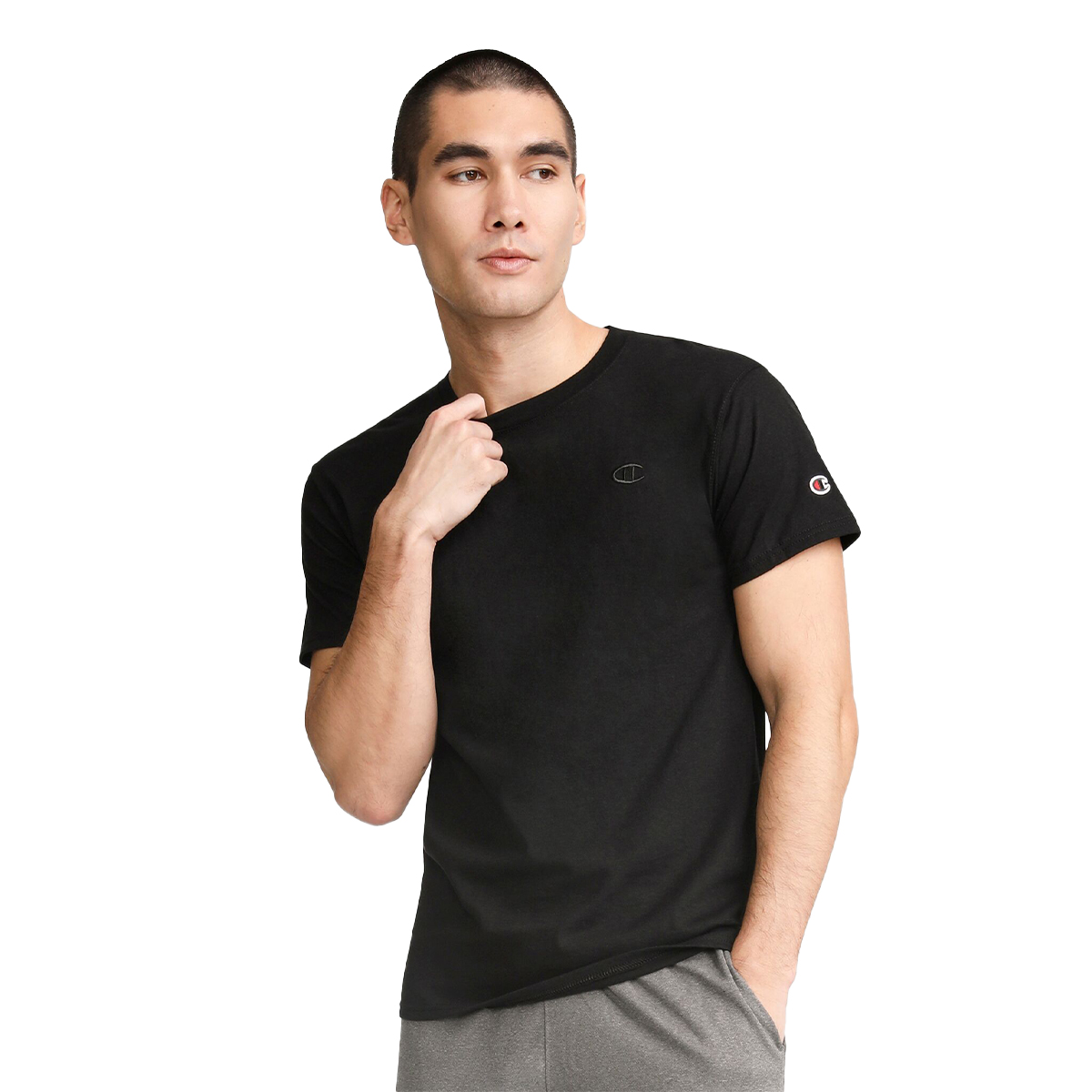 Add lived-in comfort to your daily rotation with this T-shirt for men, expertly crafted from a soft cotton or cotton blend. Cut for a standard fit, it's detailed with a shape-holding ribbed crewneck,short sleeves, and matching back neck tape for no-irritation comfort. This classic men's T-shirt style is a must-have that pairs well with sweats and shorts for a rounded-out sporty look. Finished with the iconic C logo patch embroidered at the chest for an authentic look.