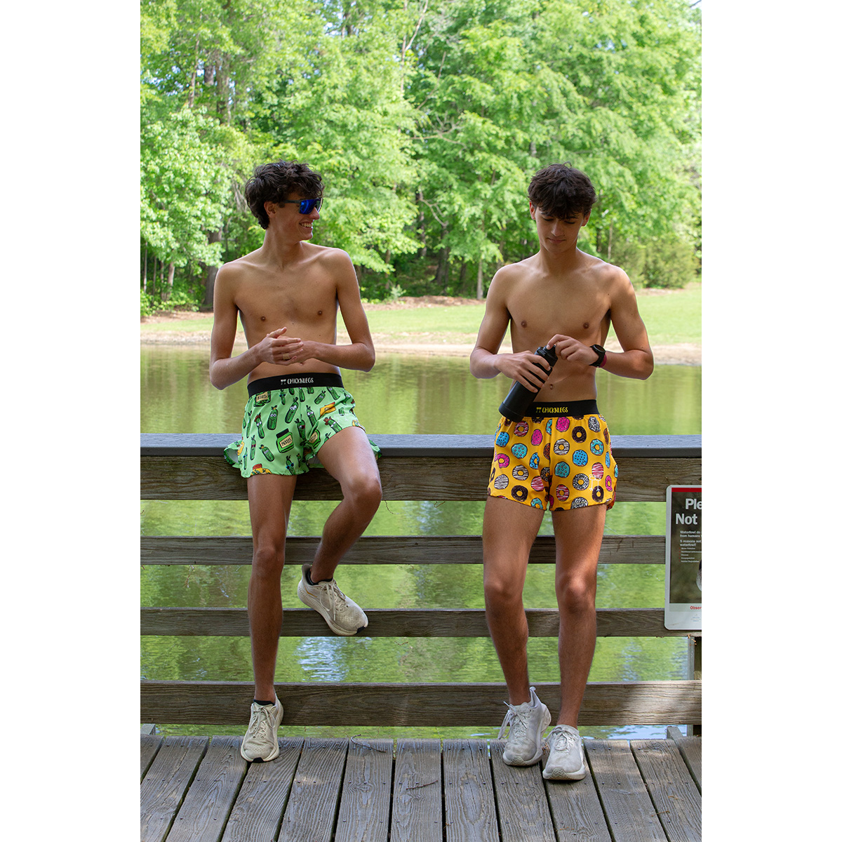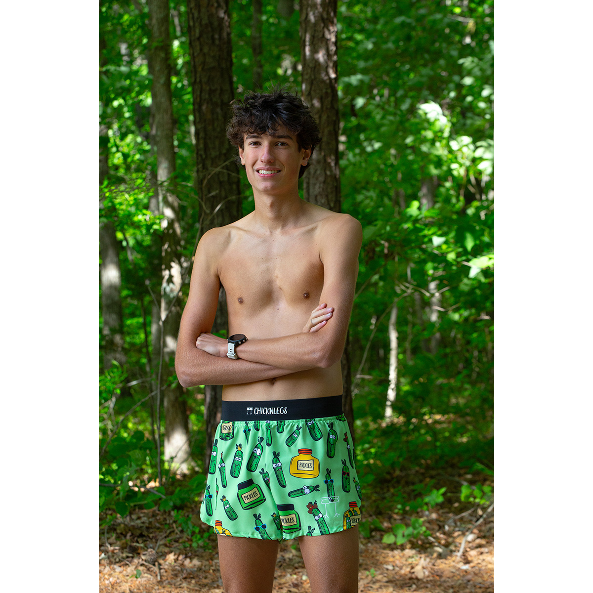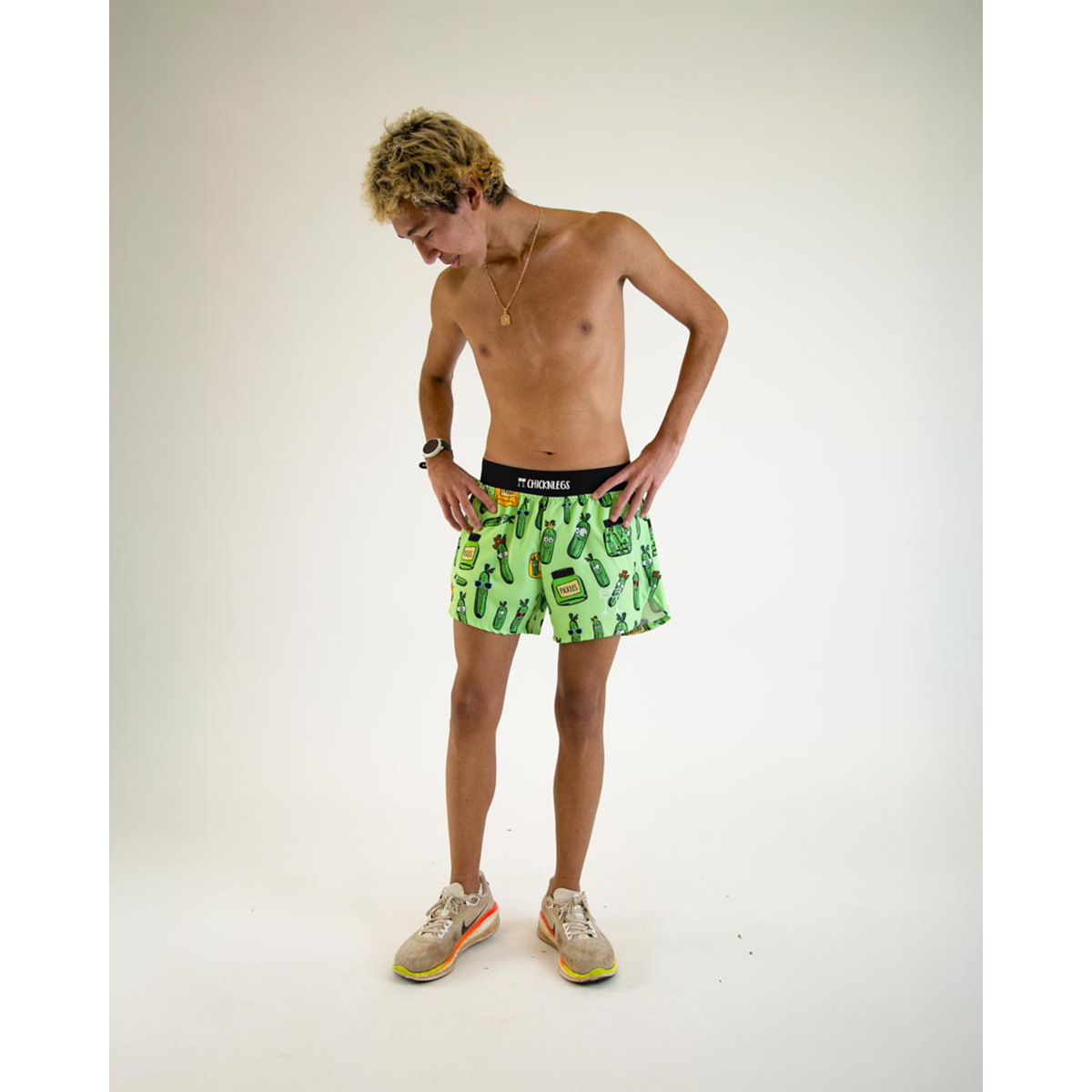 No big dill but.. These ChicknLegs 4" split running shorts are known for their lightweight fabric, ultra soft liners, comfortable waistbands, and funny printed designs.