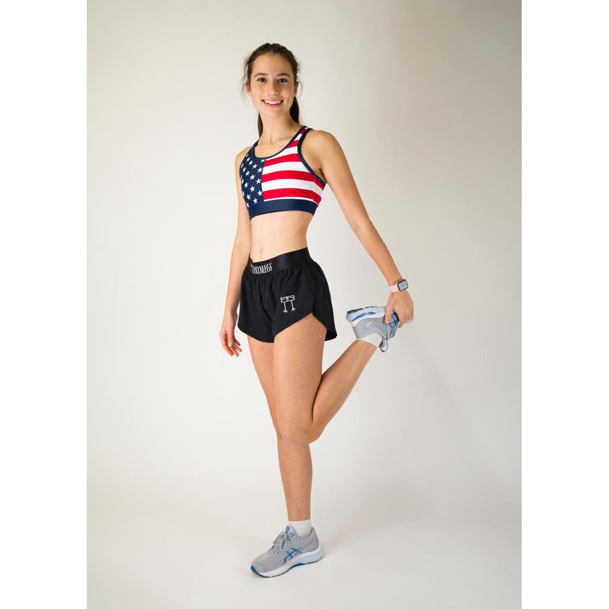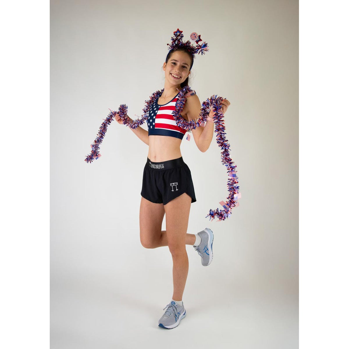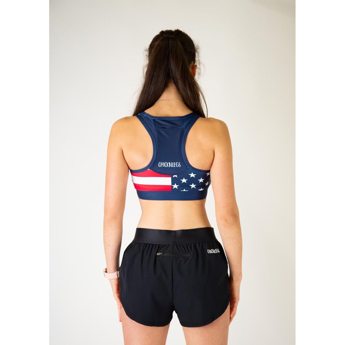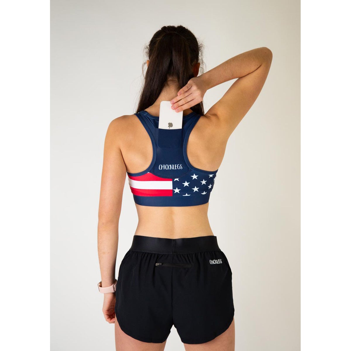 God Bless America! The American flag sports bra is the perfect addition to any run! The ChicknLegs OG Sports Bra is known for its lightweight fabric, seamless phone pocket, and fun printed designs.