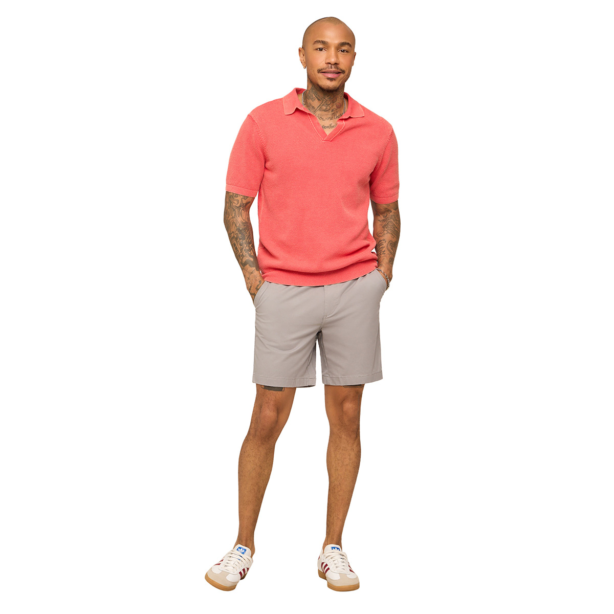 - Neutral gray color pairs easily with tees and polos