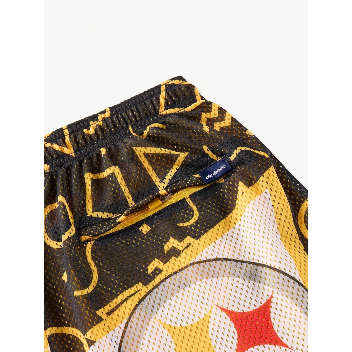 Tailgate approved, couch tested, and built to show off your team pride. Crafted from lightweight, breathable mesh, these shorts feature vintage-inspired side taping, a zippered back pocket for securing your phone during touchdown celebrations, and two roomy front pockets. Top it all off with a comfortable elastic waistband and adjustable drawcord, you?ll be comfy and secure from kickoff to overtime.