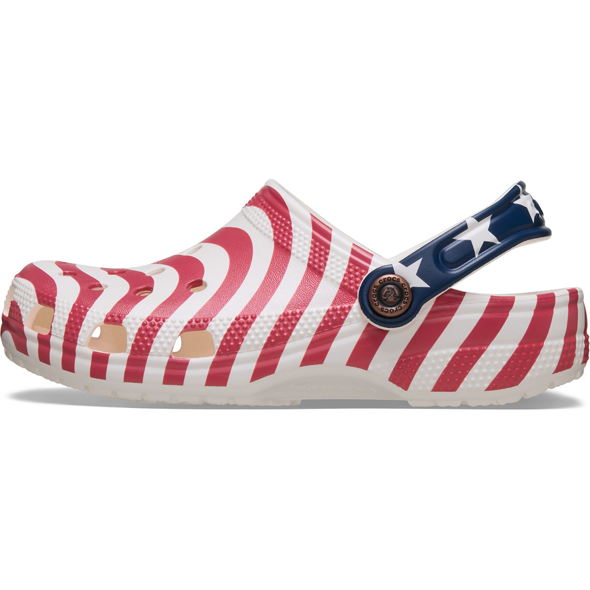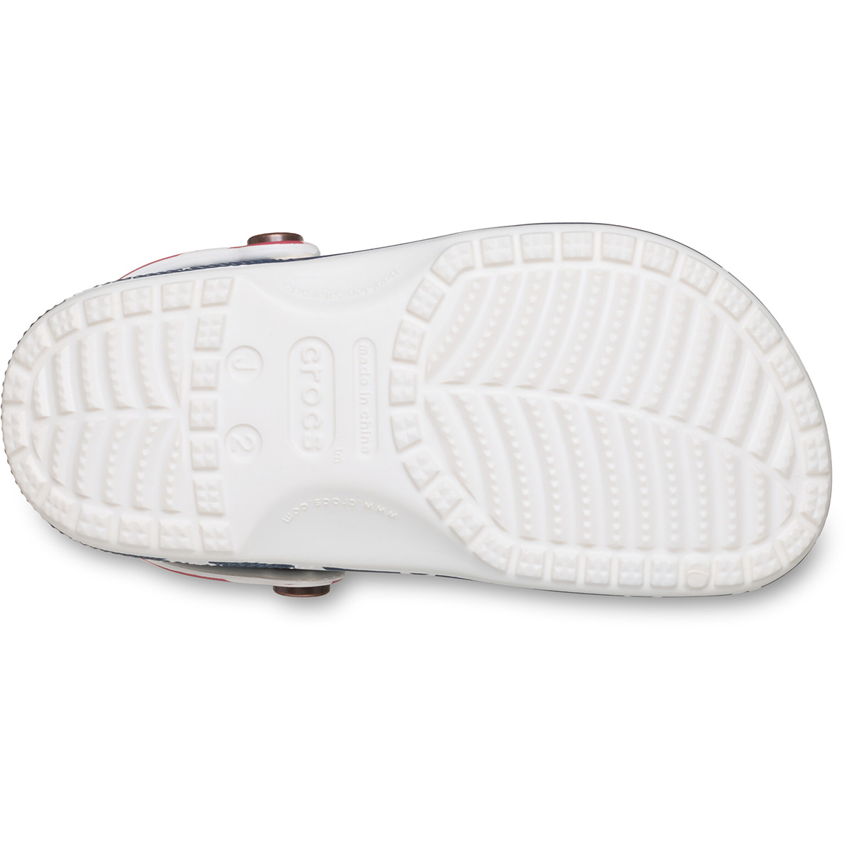Easy on and easy off, the Kids' Classic Clog delivers the iconic Crocs look with everyday comfort for playtime and beyond. Its molded Croslite material feels light underfoot while standing up to busydays. Ventilation ports help keep little feet feeling fresh, and the pivoting heel strap lets kids switch between slip-on ease and a more secure fit.
