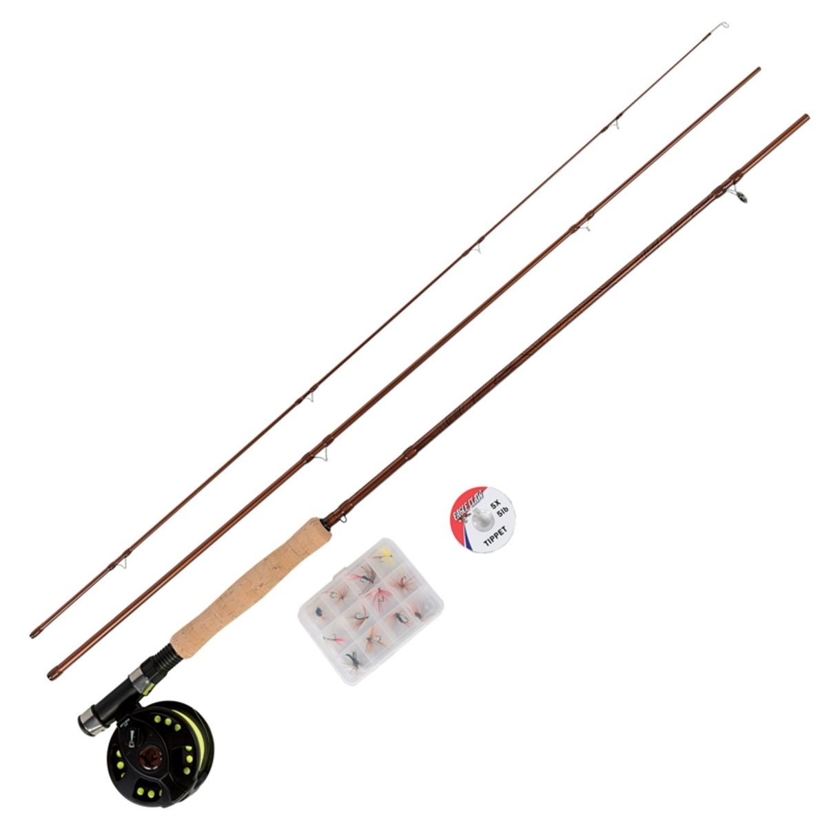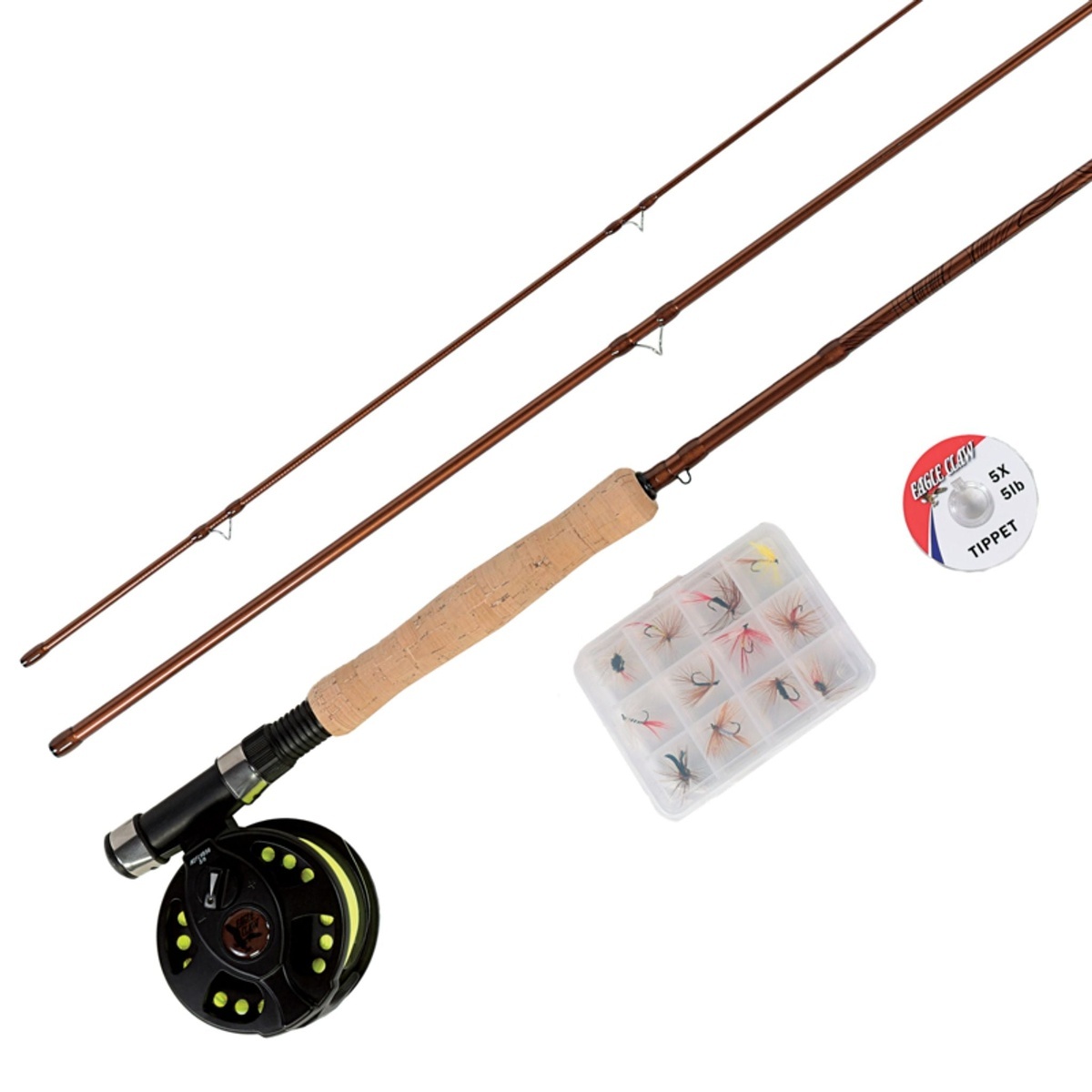 fast. With a tapered leader and a selection of flies included, it is an easy way to begin fly fishing with one complete setup.