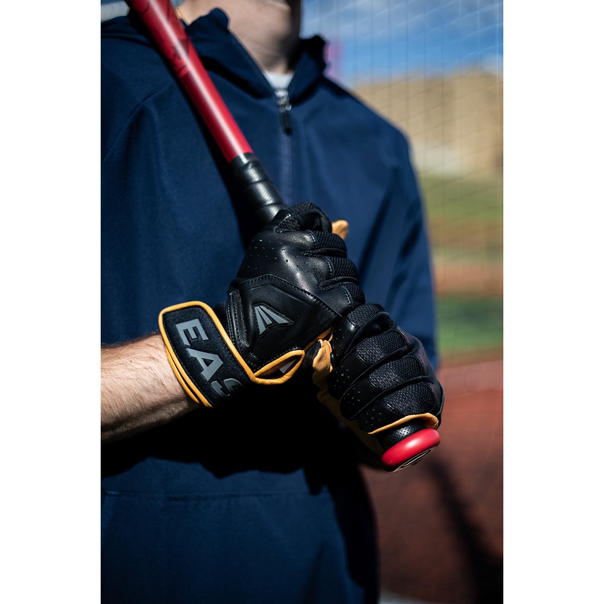 Elevate your game with the Easton PRO Locked-In Batting Gloves, providing ultimate comfort and performance on the baseball diamond. Redesigned for the modern player, these batting gloves feature ultra-soft .9mm professional-grade genuine sheepskin Cabretta leather, covering the palm, back, and fingers for an unparalleled feel. Unlock your full potential with the locked-in design, including an ergonomically designed extended neoprene cuff and a 360-degree wrap elastic strap, providing more leverage and power during every swing. These gloves are engineered for extended wear with a reinforced double layer Cabretta leather palm and thumb, offering extra durability and a professional finish. Stay cool and dry in the heat of the game with the perforated leather and ventilated air mesh, ensuringbreathability for maximum comfort. The double-stitched rolled edges and leather binding add to the glove's durability and premium look. Get in the game right away with the Easton PRO Locked-In BattingGloves, sold with a stylish glove bag for added convenience.