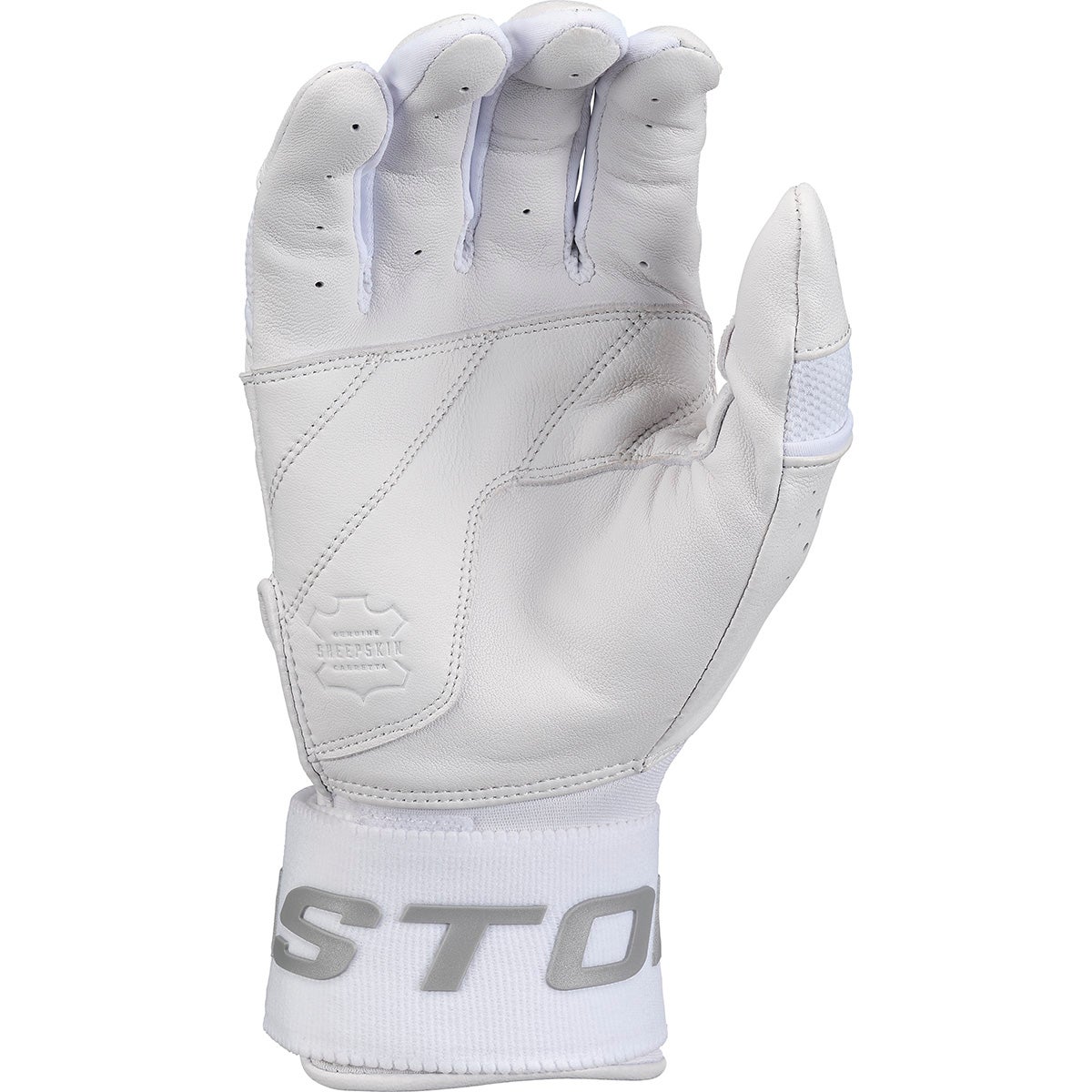 Elevate your game with the Easton PRO Locked-In Batting Gloves, providing ultimate comfort and performance on the baseball diamond. Redesigned for the modern player, these batting gloves feature ultra-soft .9mm professional-grade genuine sheepskin Cabretta leather, covering the palm, back, and fingers for an unparalleled feel. Unlock your full potential with the locked-in design, including an ergonomically designed extended neoprene cuff and a 360-degree wrap elastic strap, providing more leverage and power during every swing. These gloves are engineered for extended wear with a reinforced double layer Cabretta leather palm and thumb, offering extra durability and a professional finish. Stay cool and dry in the heat of the game with the perforated leather and ventilated air mesh, ensuringbreathability for maximum comfort. The double-stitched rolled edges and leather binding add to the glove's durability and premium look. Get in the game right away with the Easton PRO Locked-In BattingGloves, sold with a stylish glove bag for added convenience.