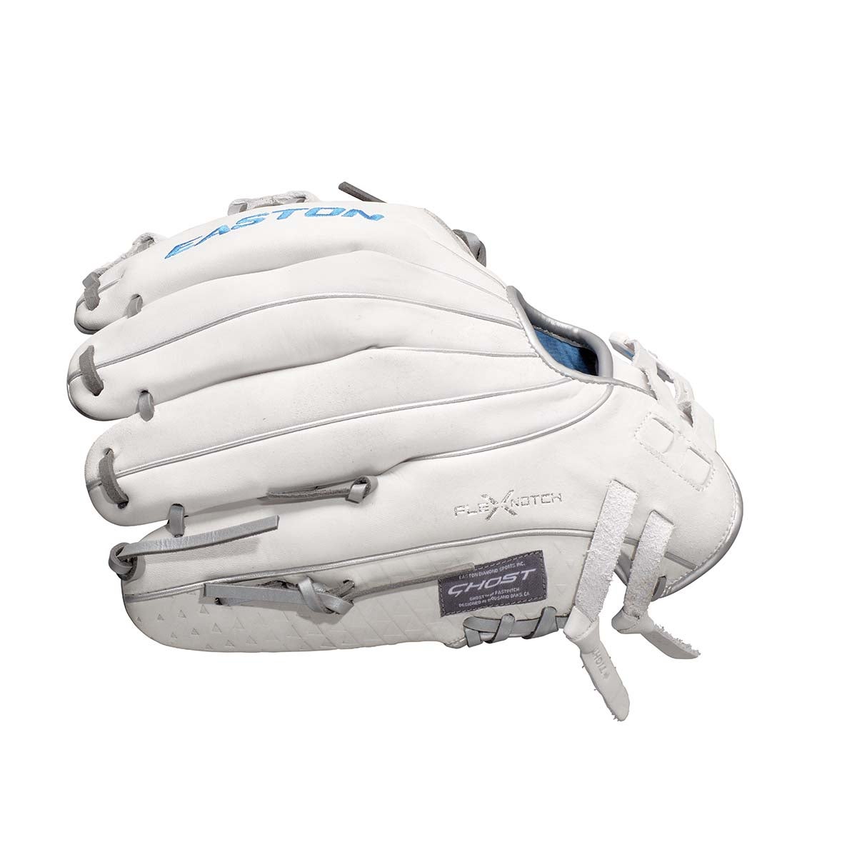Easton's Ghost series is a symbol of elite fastpitch play. The Ghost NX 11.75-inch Fastpitch Pitcher/Outfield glove fits right in. These gloves were crafted in gameday-specific patterns designed forsmaller hands and perfectly suited to the fastpitch game. On the outside, the Game Ready Diamond Pro Steer leather and Flex Notch closure system make this glove super soft and easy to handle right away. The Quantum Closure System on the glove back ensures a perfect fit for every player, and the interior Ax Suede microfiber lining creates unmatched comfort and durability. Also, the striking white-and-blue colorway and professional-grade silver metallic rawhide lace are sure to turn heads. Hit the field with the Ghost NX 11.75-inch Fastpitch Pitcher/Outfield Glove and master the softball diamond. Get yours today!