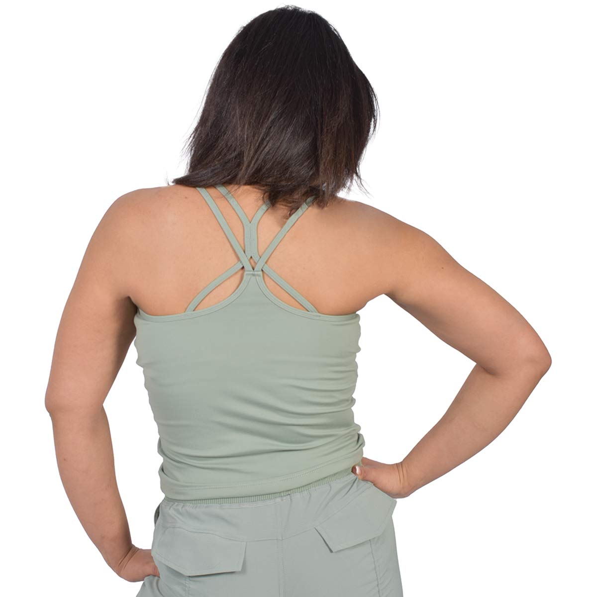 - Double criss cross back design for secure support and style