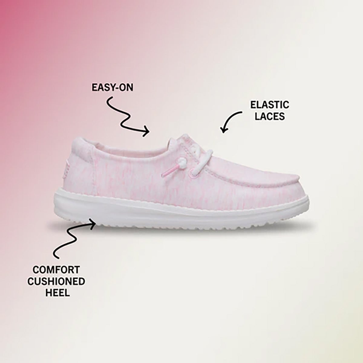Say hello to her new favorite shoes. The Wendy Youth Stretch Jersey brings lightweight comfort, softstretch, and easy-on style to keep up with every step, skip, and dance move. Designed with a breathathable jersey upper and an ultra-flexible sole, these shoes feel like walking on air. And thanks to the slip-on design with stretchy laces, getting out the door just got way easier. Bonus: they're machine washable, because life with kids = mess.