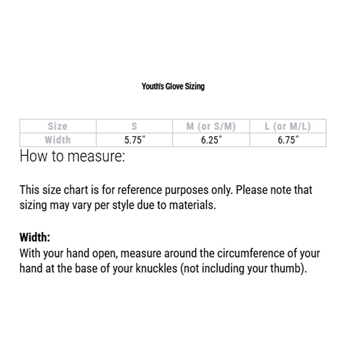 - Cuff: Elasticized palm and adjustable web belt on back