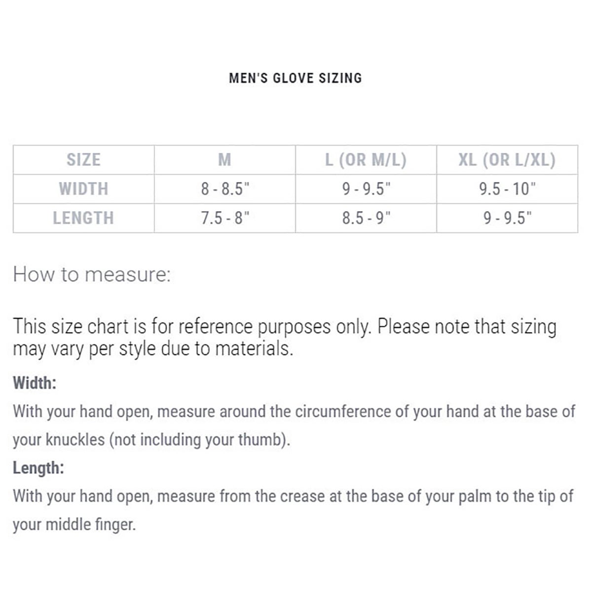 - Thumb: Reinforced thumb, Synthetic leather patch