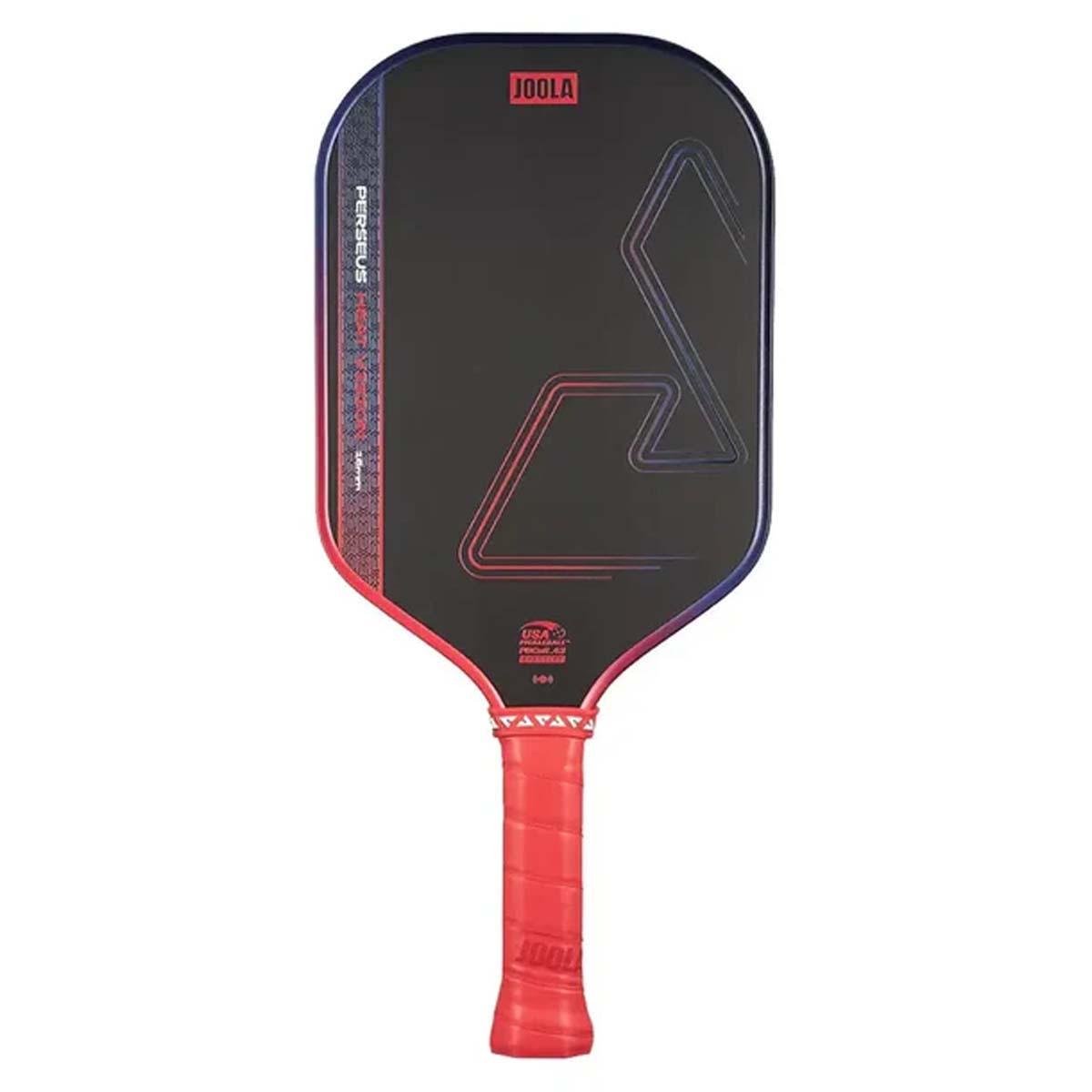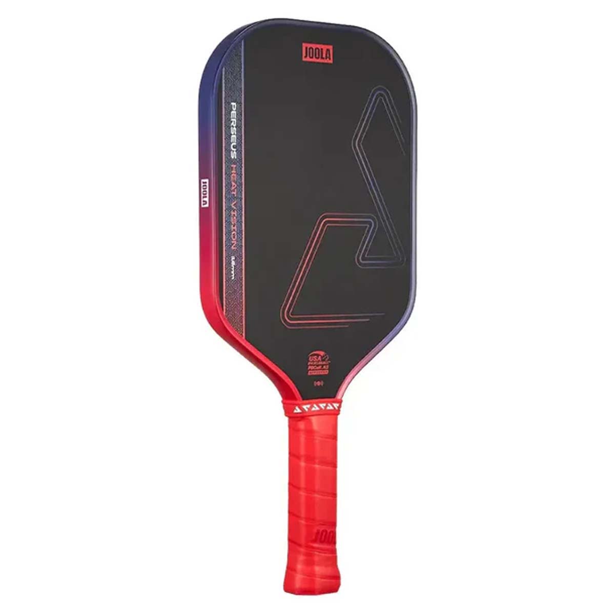 Turn up the heat with the Joola Perseus Edge Heat Vision 16mm Pickleball Paddle, which has an elongated shape with square corners to balance hitting power with stability and reach. Heat Visionpaddles are great for beginners and intermediate players alike, being made with premium construction at a value price tag. A thermoformed edge wall at the neck improves durability while maintaining