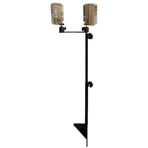 - With the ability to mount two cameras, the Dual Camera Ground Mount allows one or two cameras to securely attach to the mounting plates with standard 1/4"-20 receiver and can be adjusted
