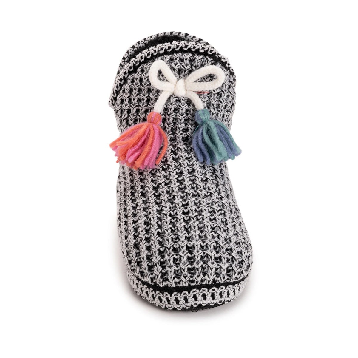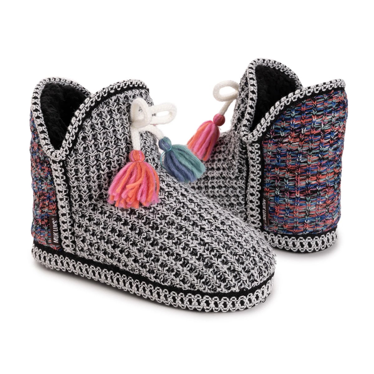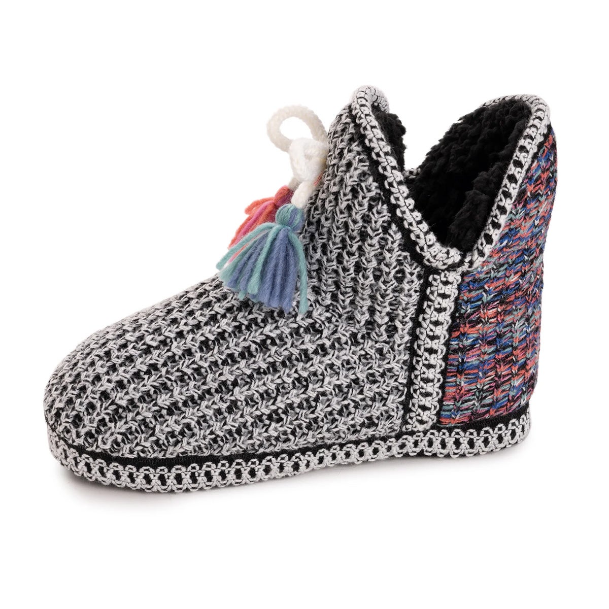 Stay warm and cozy with the Amira Slippers. These versatile bootie slippers feature uniquely in-house designed knit patterns and feature a soft faux fur lining and durable traded non-slip