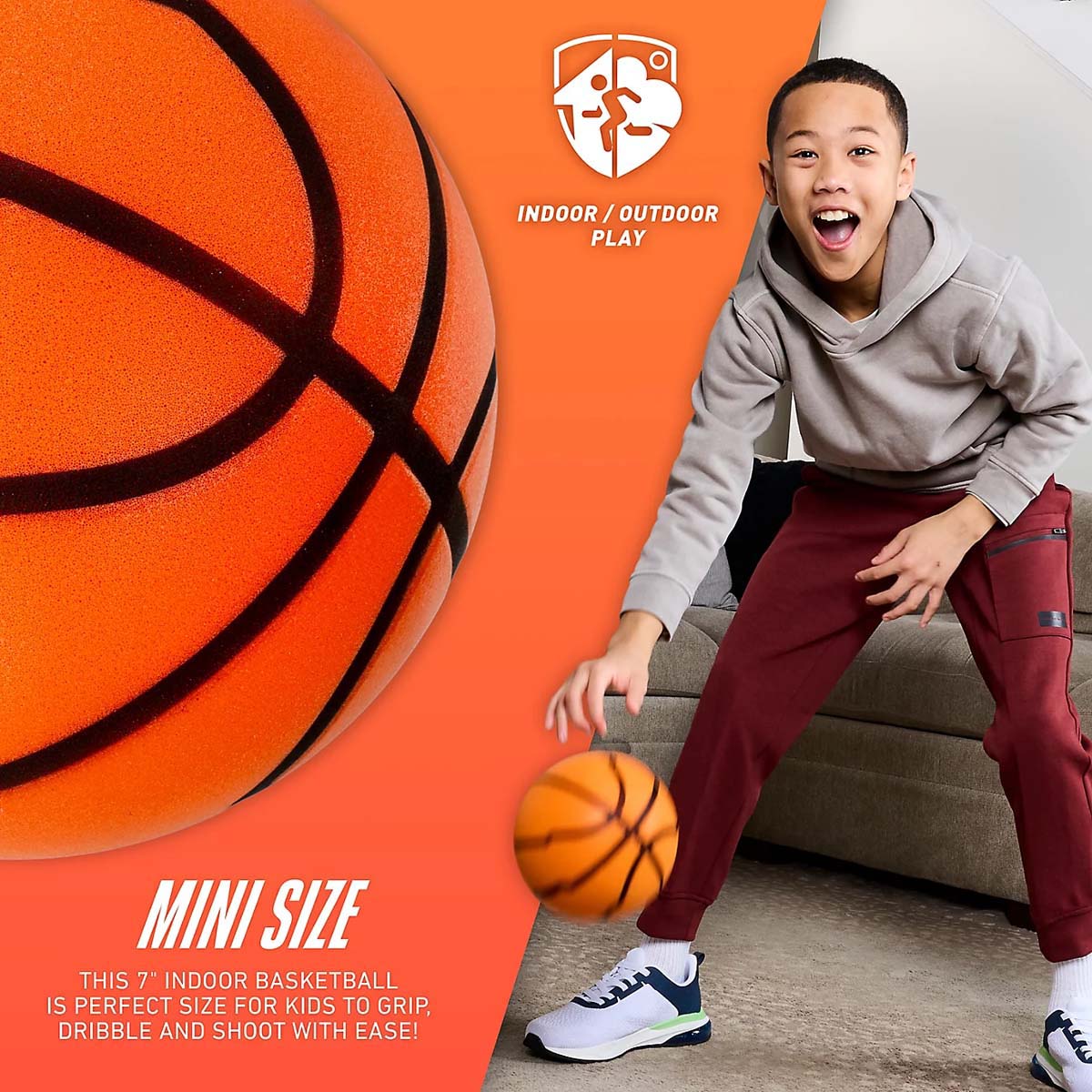 Look to the NERF Quiet court Mini 7 in Basketball if you want to let kids shoot hoops indoors. This basketball is made of soft foam that won't make loud sounds when dribbled, and the mini size makesit easy for youngsters to grip it, pass it and shoot it.