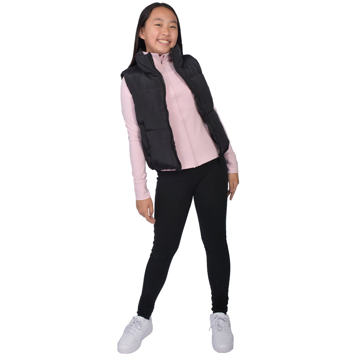 Add effortless style and warmth to her wardrobe with the New Look Sport Girls' Puffer Vest. Designedfor everyday comfort and movement, this lightweight quilted vest features an adjustable drawstring